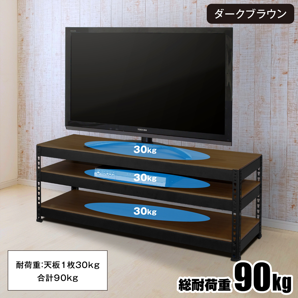 耐荷重50kgの頑丈設計で、大型テレビにも対応しております。