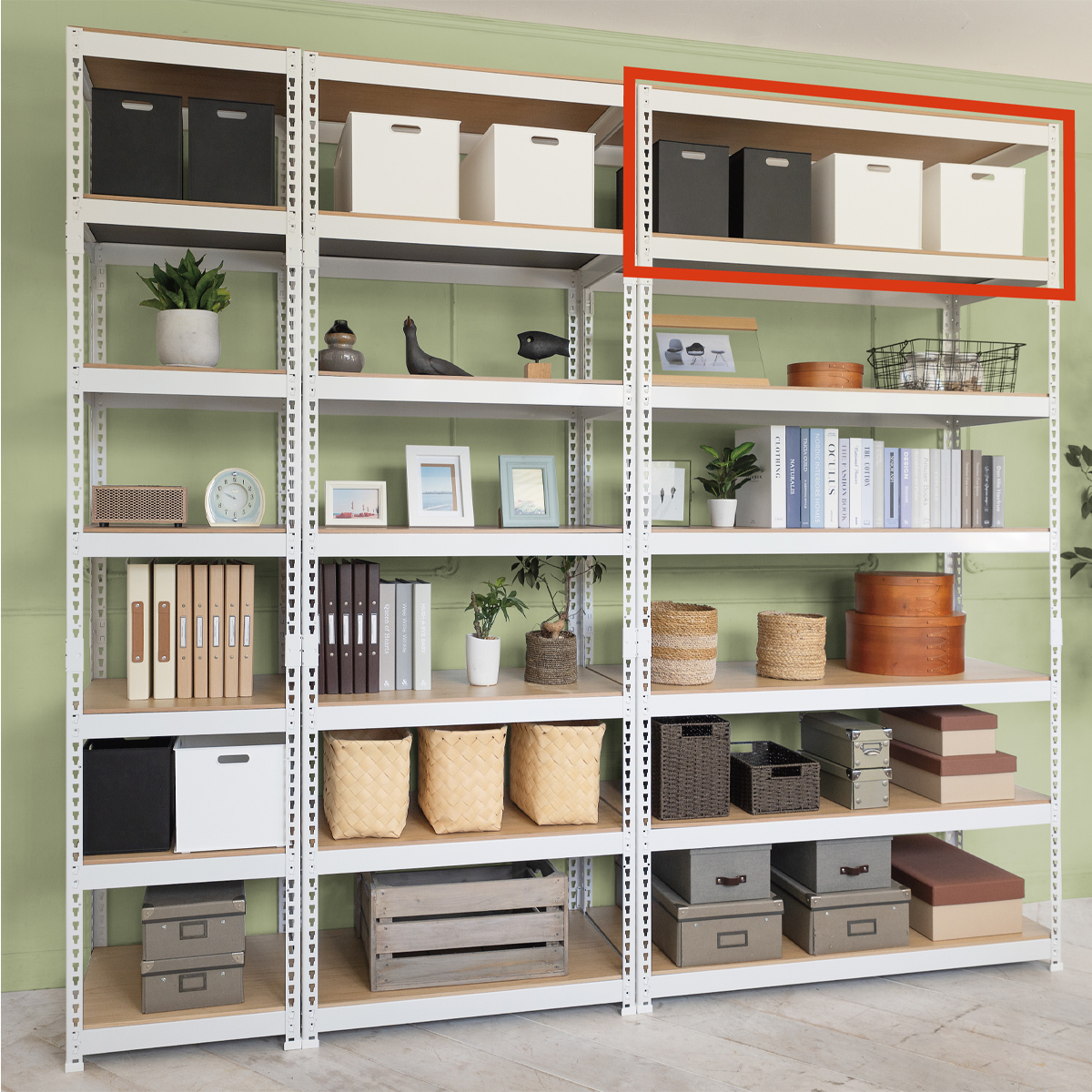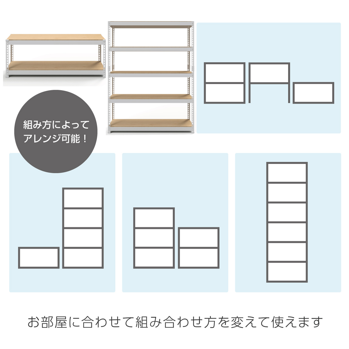 また、5段タイプ(H1800)に連結して7段タイプ(H2200)としても使用でき、シーンや設置場所に合わせた柔軟なアレンジが可能です。