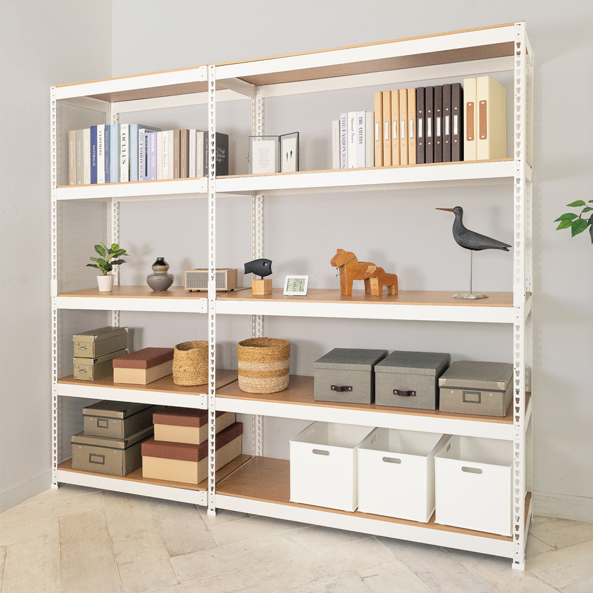 お手持ちのラックに追加できる、5段のオープンシェルフ増連セットです。