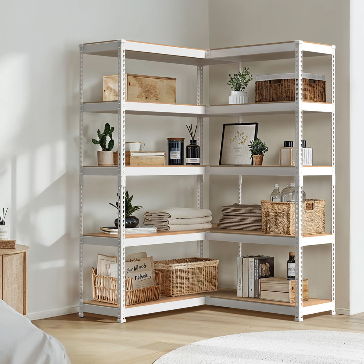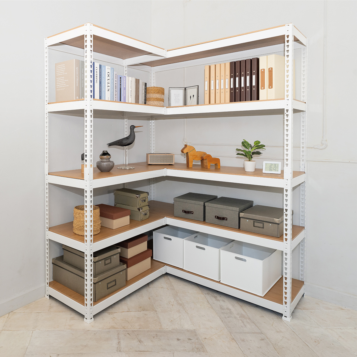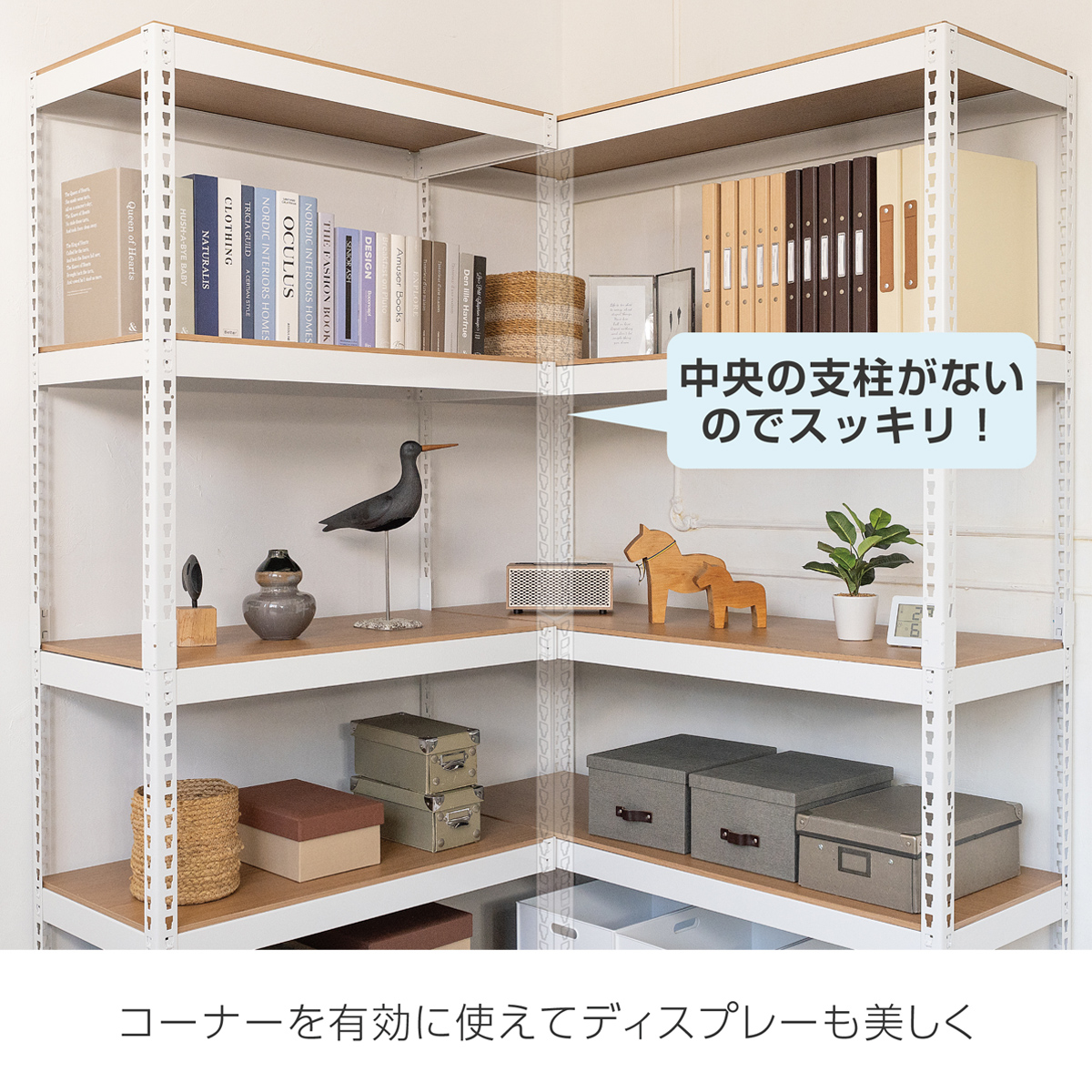 特にL型連結時はコーナー部分に支柱がないため物の出し入れもスムーズにおこなえます。