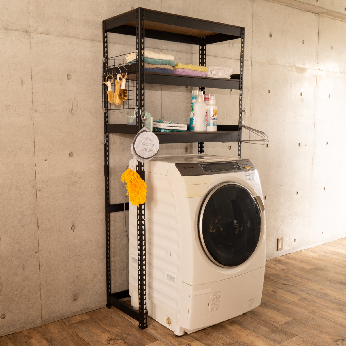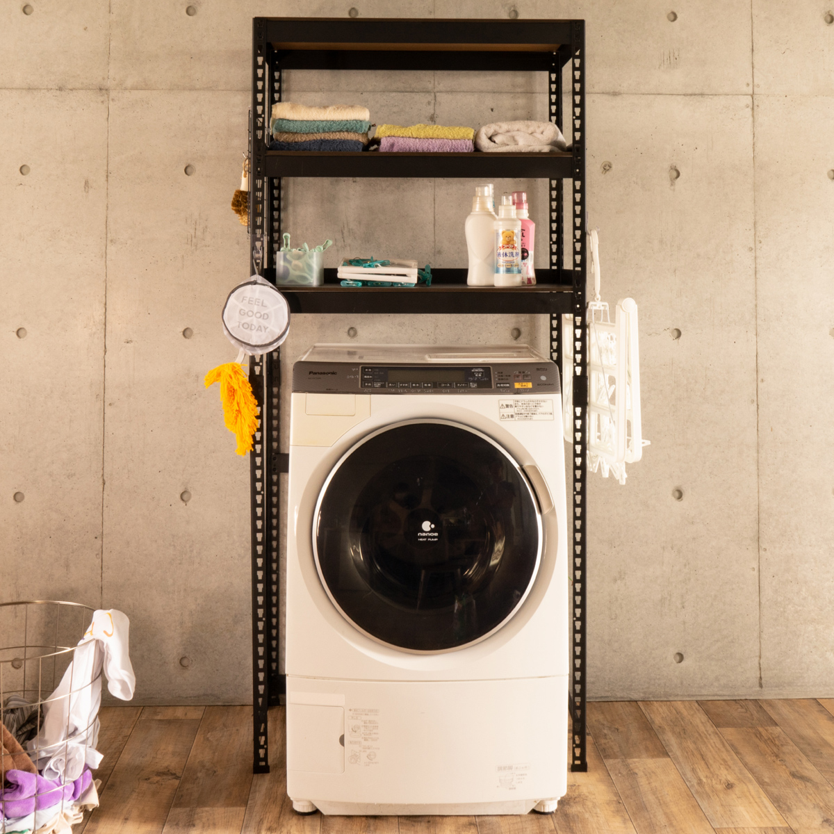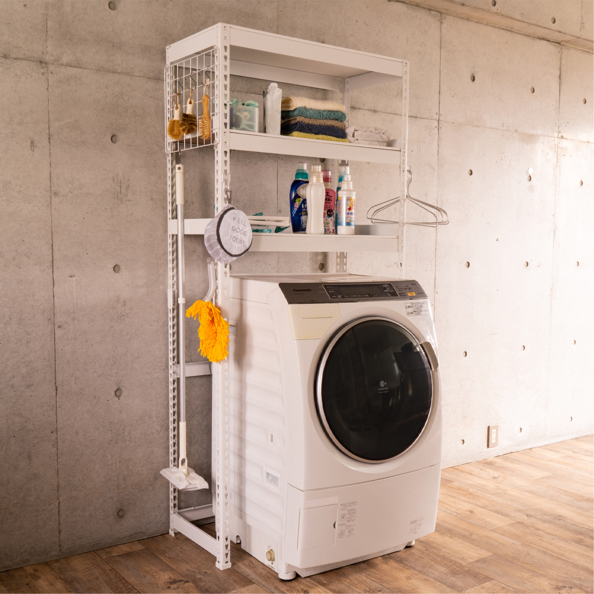 冷蔵庫や洗濯機の上などのデッドスペースを有効活用できる上収納ラックです。