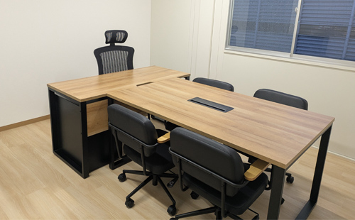高い遮光性を持つガイドレール型ロールスクリーンは、早朝・日中でも窓から射し込む光をしっかりと防ぎ、様々なビジネススタイルに最適な空間を提供します。