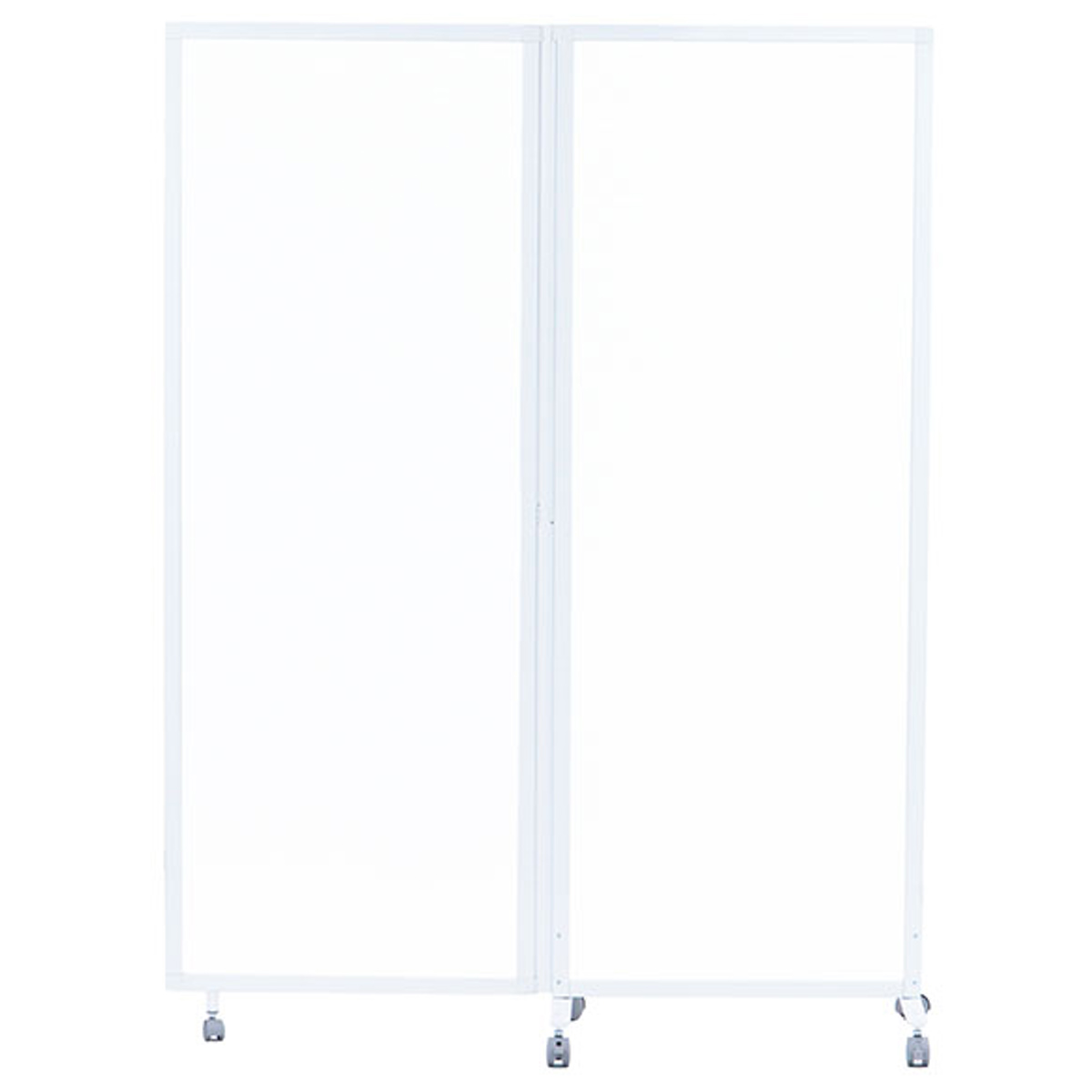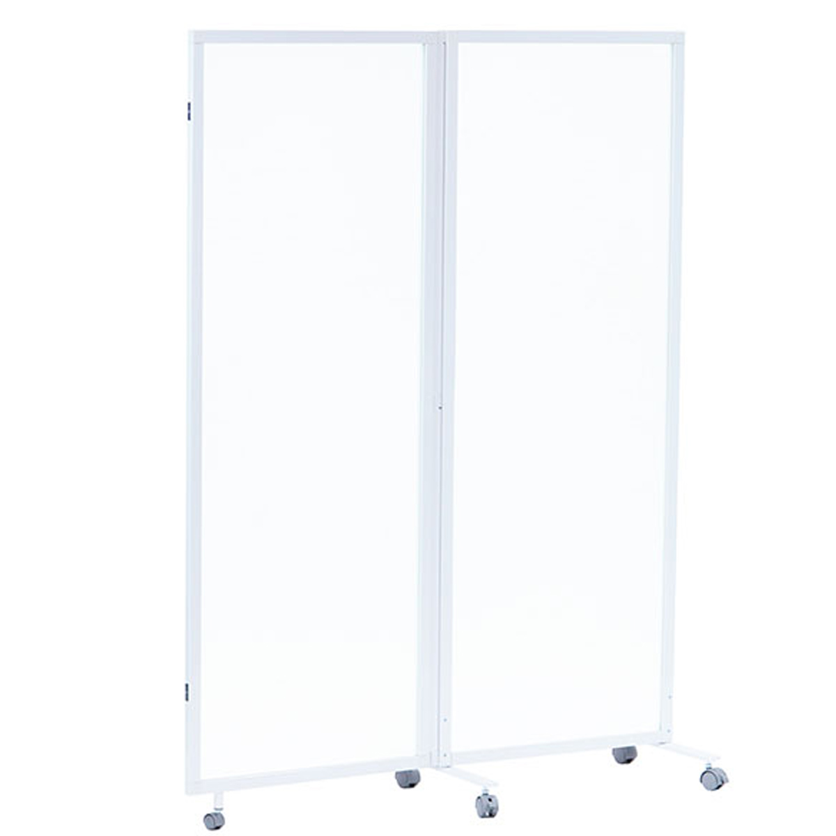 衝撃に強く、割れにくい半透明のポリカーボネート素材を使用した2連パーテーション。