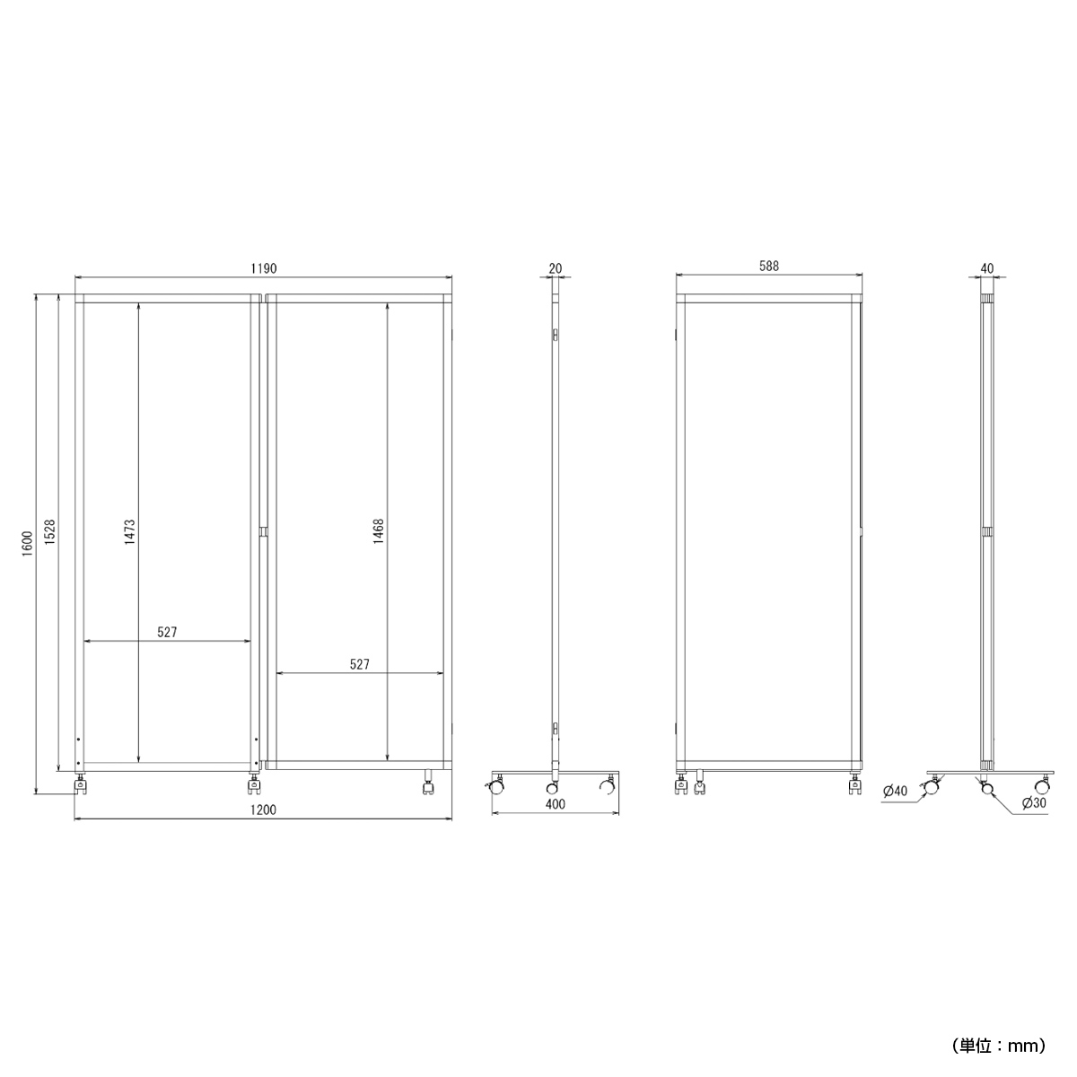 ポリカ2連パーテーション YSFシリーズ(W1200×D400×H1600)