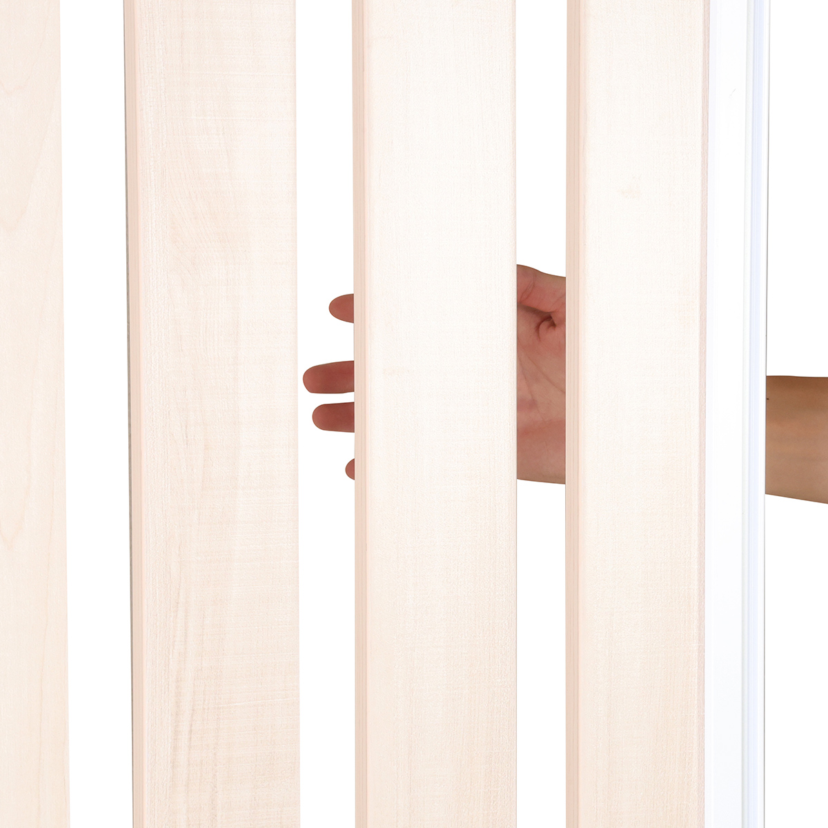木目調の板面を縦型のラダー(はしご)状に配置した、デザイン性と開放感を兼ね備えた、ローパーテーションです。