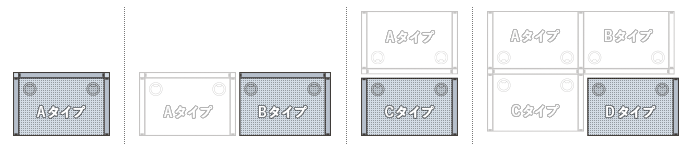 | 専用デスク天板を使用した、連結バリエーション(“A~D”タイプ別、連結イメージ) |