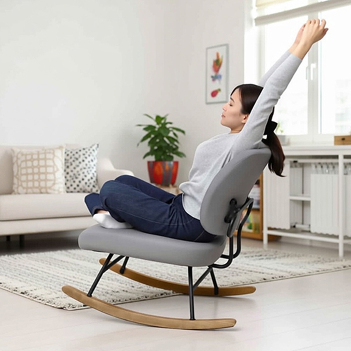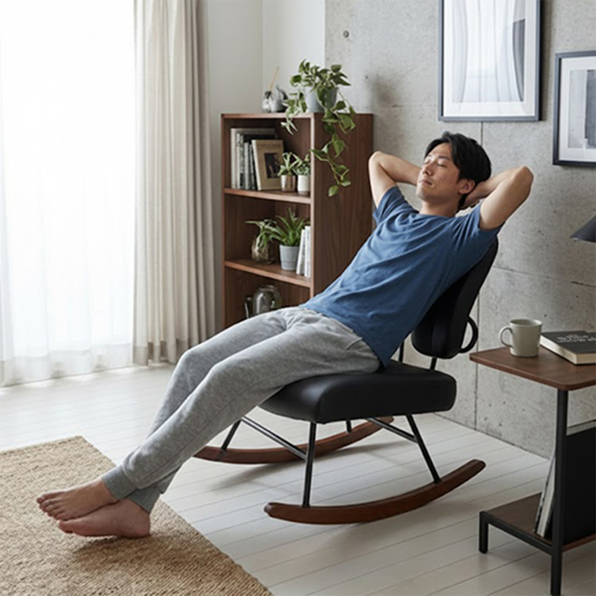 前後のスムーズなロッキングが、作業の合間の休憩や気分転換に心地よい揺れを生み出す構造。