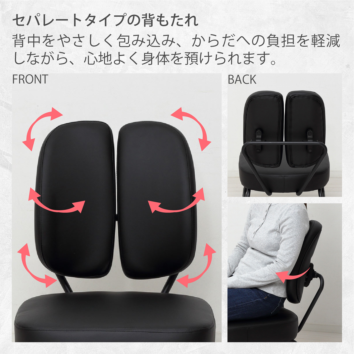 セパレート背もたれで心地よくフィット