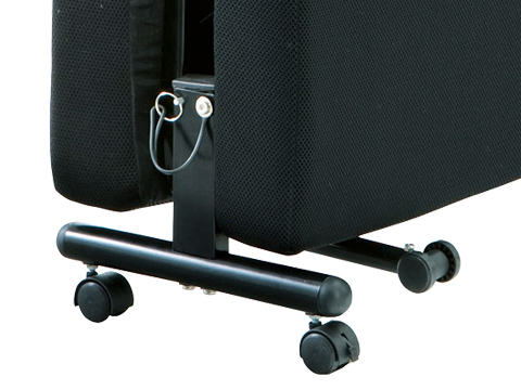 キャスターが付いているので折り畳んだ状態で移動ができ、キャスターにはストッパーも付いているのでしっかりとその場に固定できます。