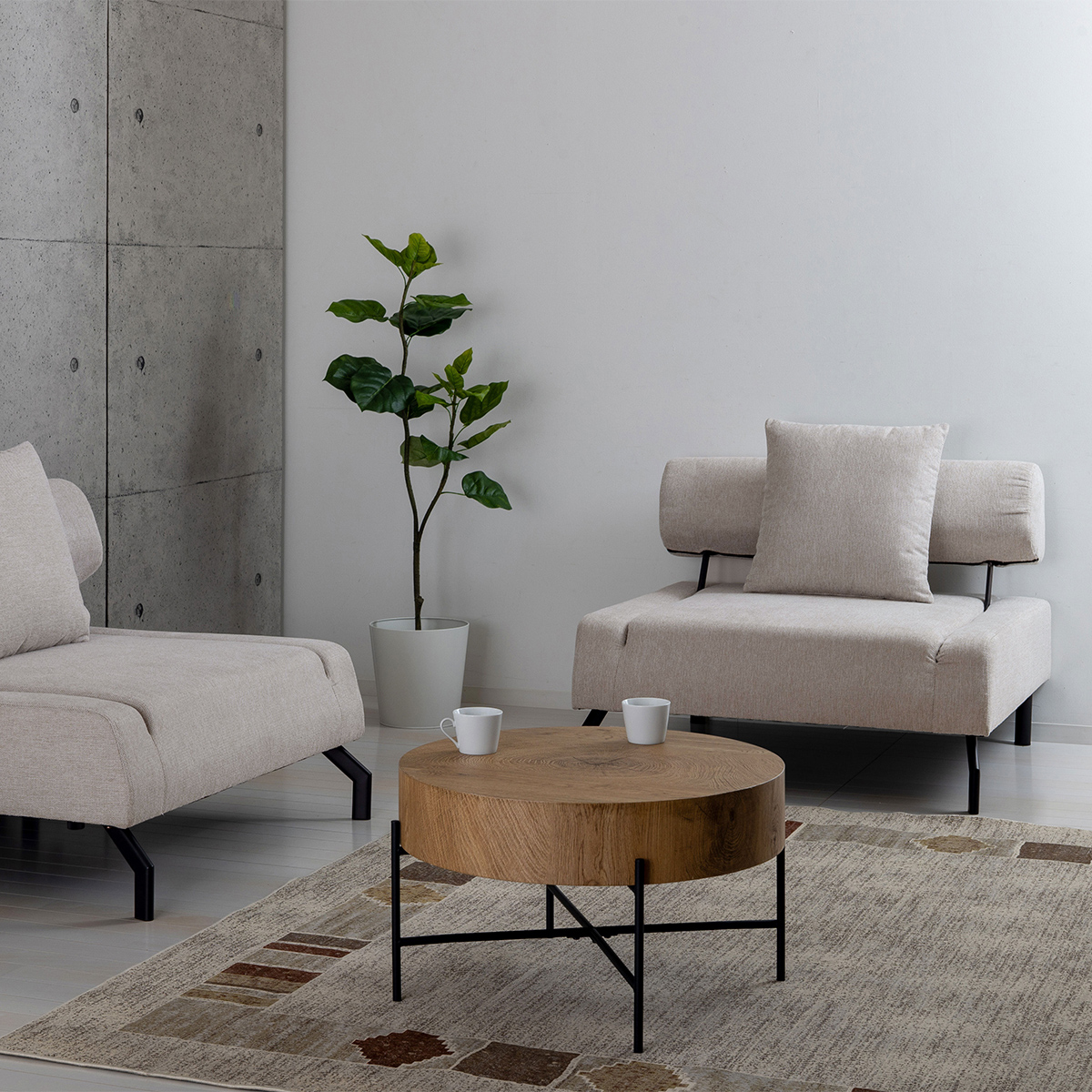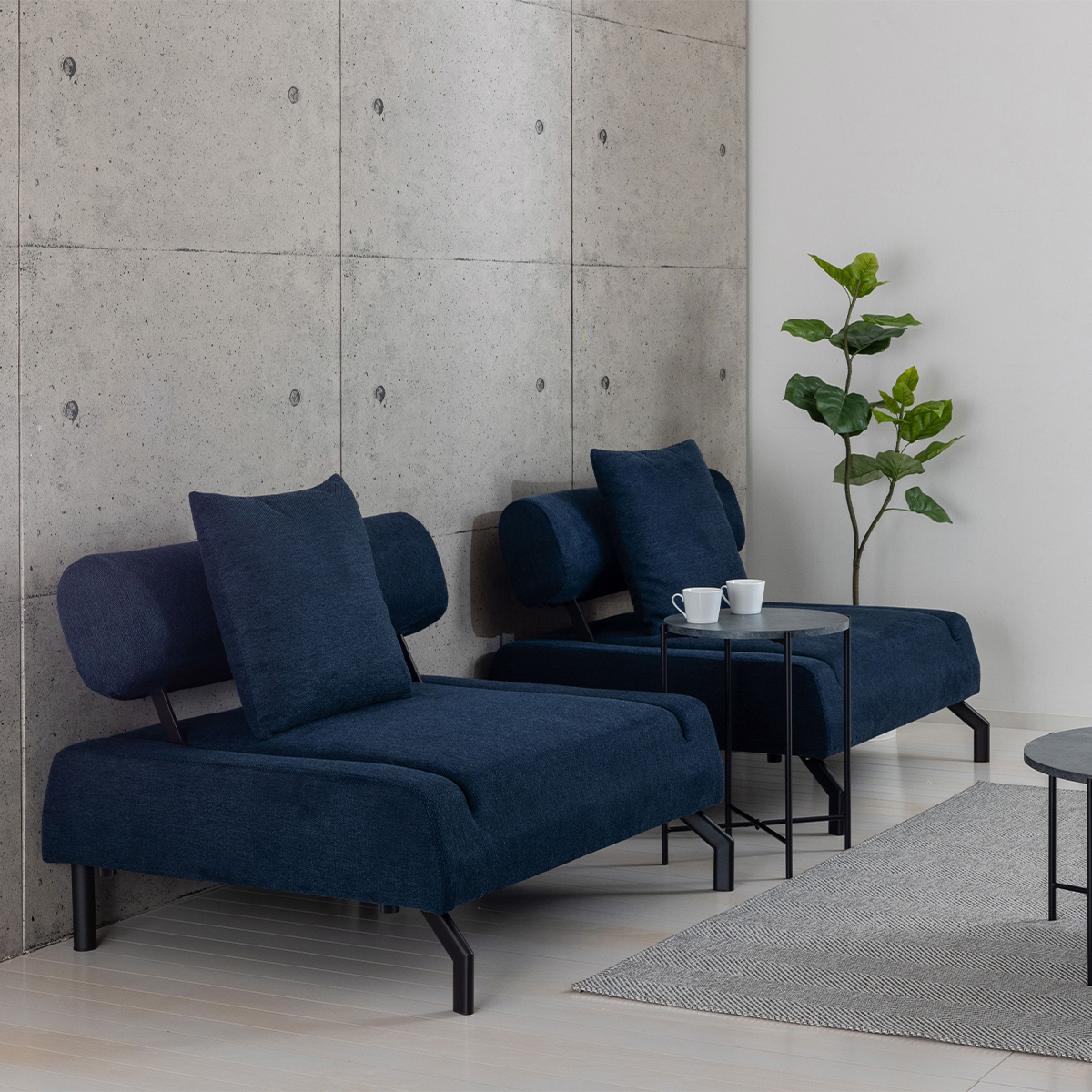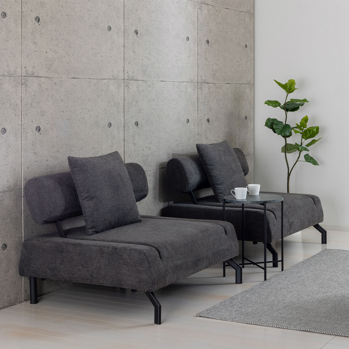 2台を自由にレイアウトでき、休憩室から応接スペースまで幅広く対応。