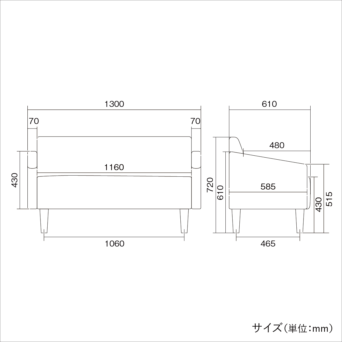 | サイズ | W1300×D610×H720mm 座面高:430mm |