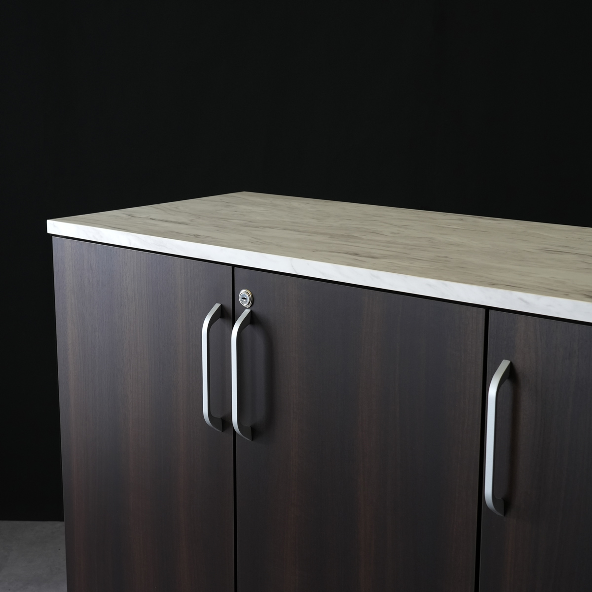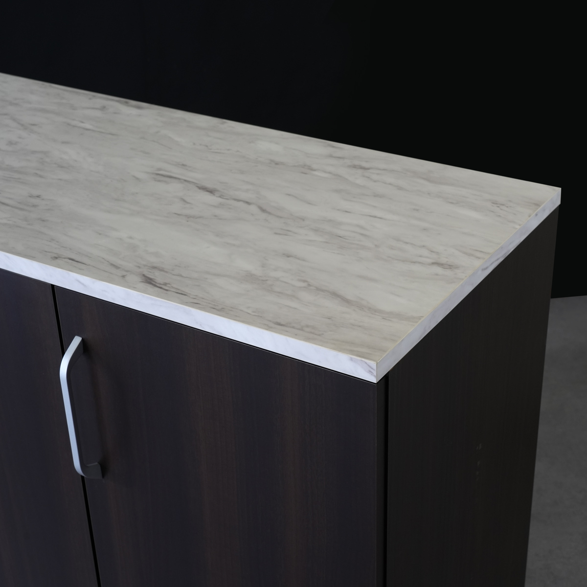 | 材質 | 【ダークブラウン】 天板、天板エッジ:ウエンジ人工杢(ウレタン塗装仕上) 【マーブルホワイト】 天板(表面材):メラミン化粧板(フラッシュ) 天板エッジ:メラミン 【共通】 扉、側面、内部:化粧合板仕上げ ハンドル:亜鉛ダイカスト |