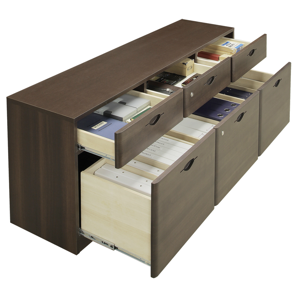 日本一の家具の町、大川のメーカーと共同開発した、国産役員用家具シリーズの3列サイドボードです。