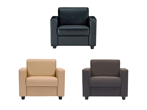ファブリックと、耐次亜塩素酸対応のビニールレザーの2種類の張地から選べる応接ソファーです。