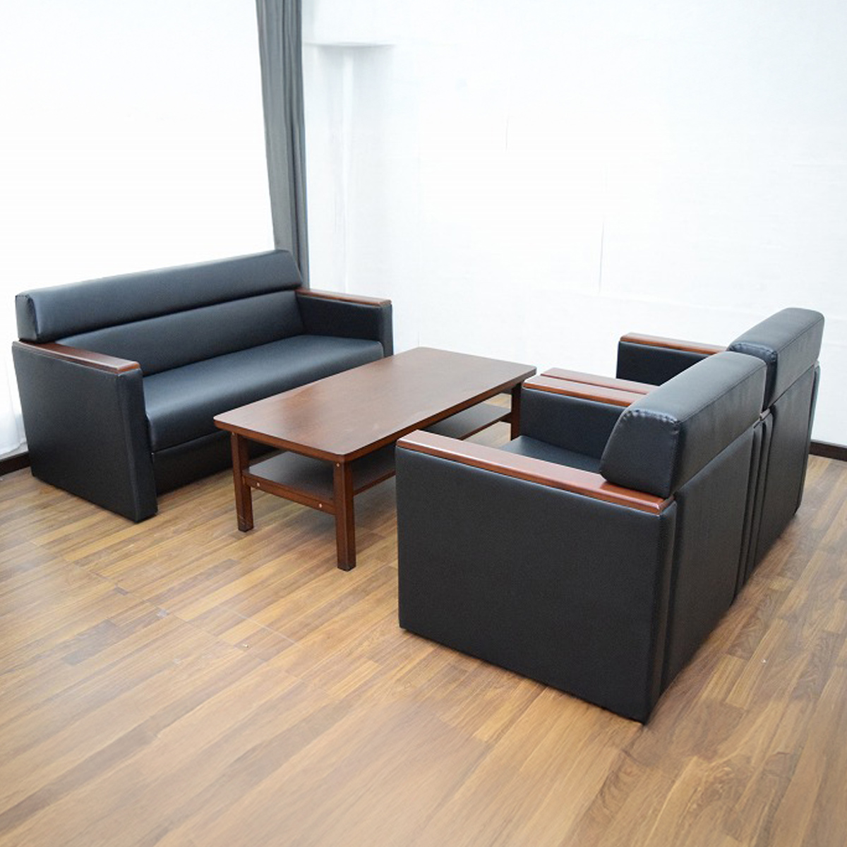高級感漂うブラックの張地はメンテナンス性に優れたPVC仕様で、オフィスの来客用として応接室、役員室に向いています。