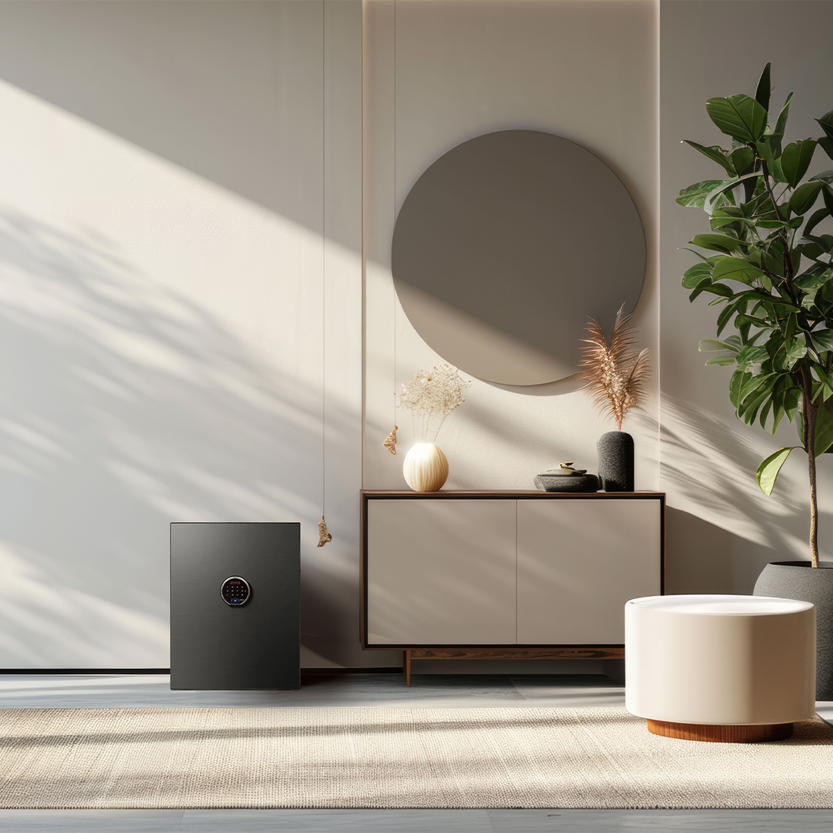 モダンでシャープなカラーリングが特徴的な、「BEYOND(ビヨンド)」シリーズの36L型プレミアム耐火金庫です。