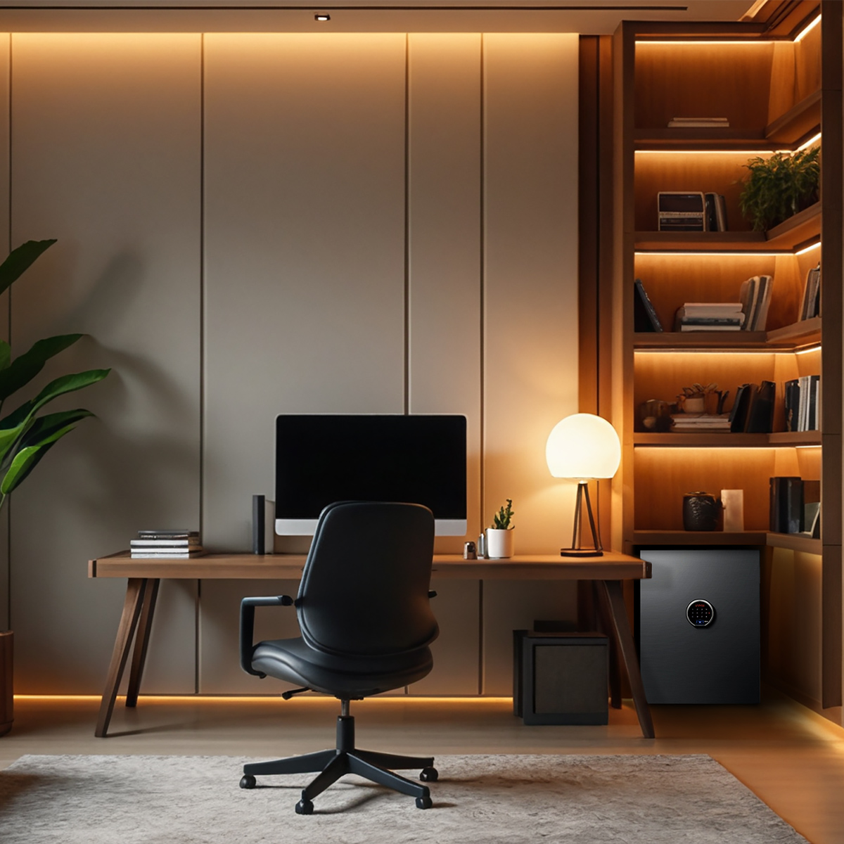 落ち着いたシャープなカラーリングで、クールな雰囲気の耐火金庫です。