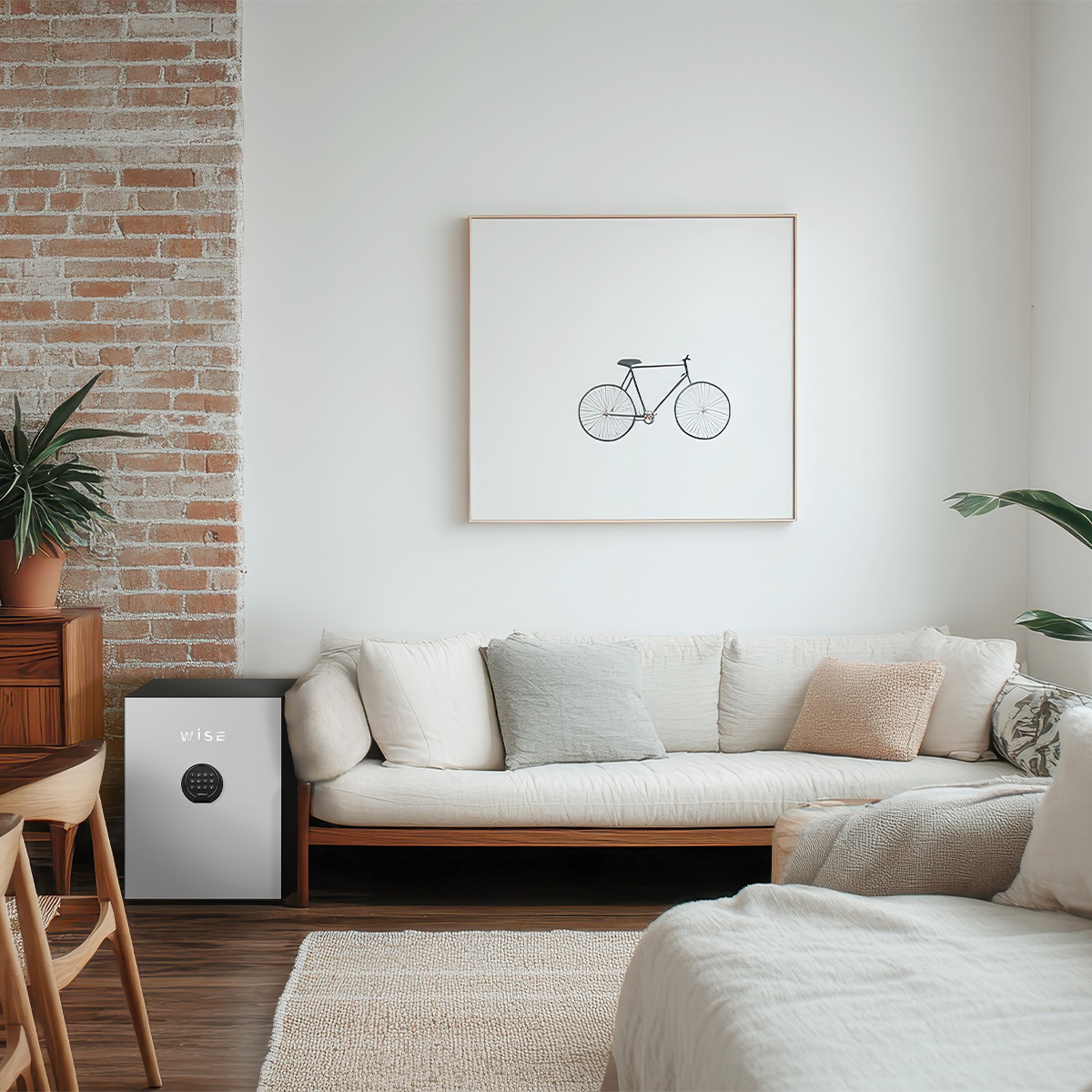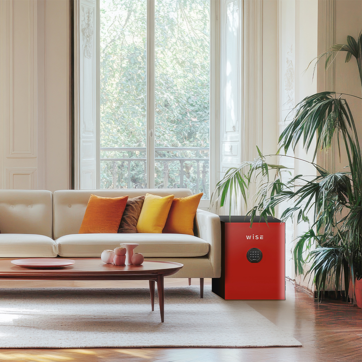 バリエーション豊富なカラーにより、安心だけでなく空間に彩り与えてくれる、「WiSE(ワイズ)」シリーズの36L型プレミアム耐火金庫。