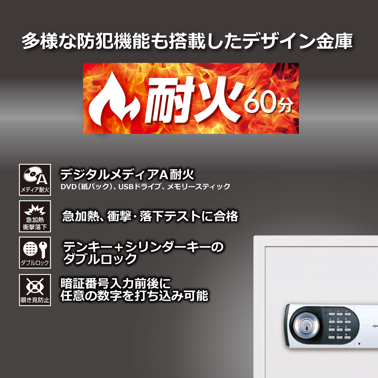 もちろん、60分耐火・急加熱・落下試験合格品です。