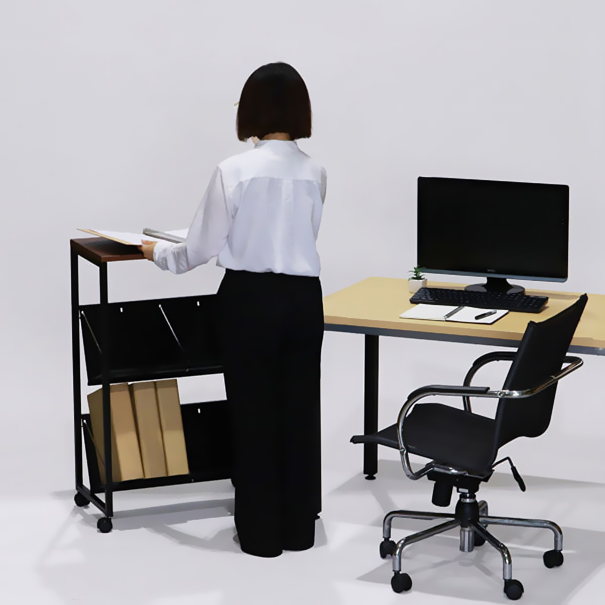 傾斜付きの棚で書類の出し入れがしやすく、キャスター付きで移動も簡単です。