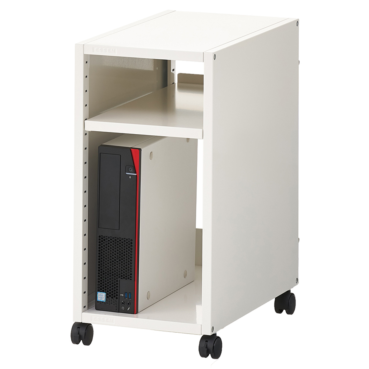 デスク下に格納できる、シンプルなスチール製のCPUワゴンです。