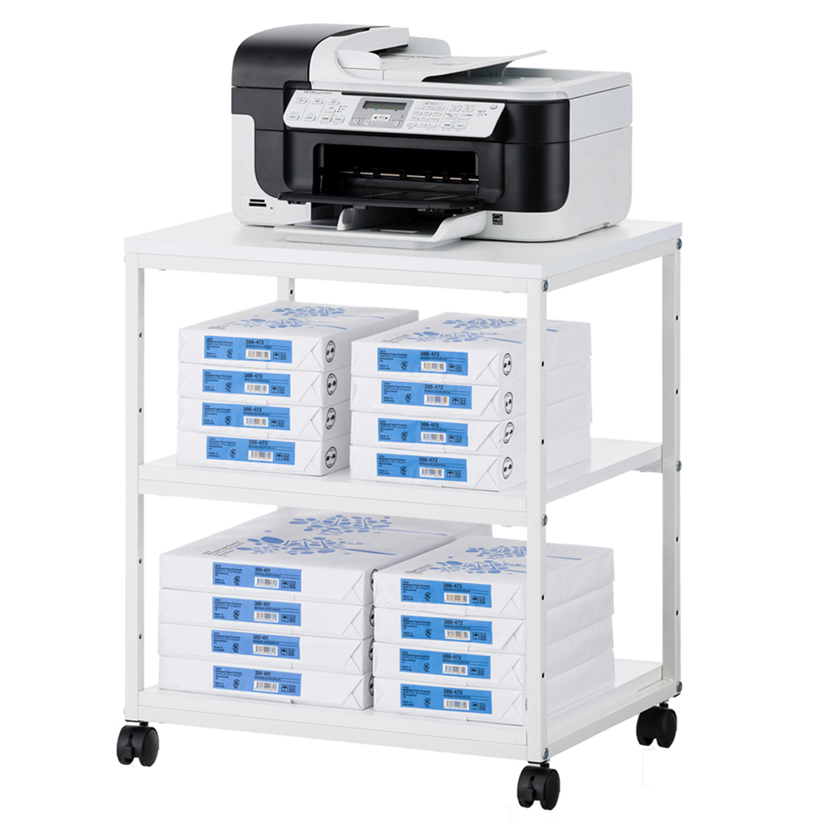 シンプルで大容量の収納力を備えた、3段タイプのスチール製プリンターワゴンです。
