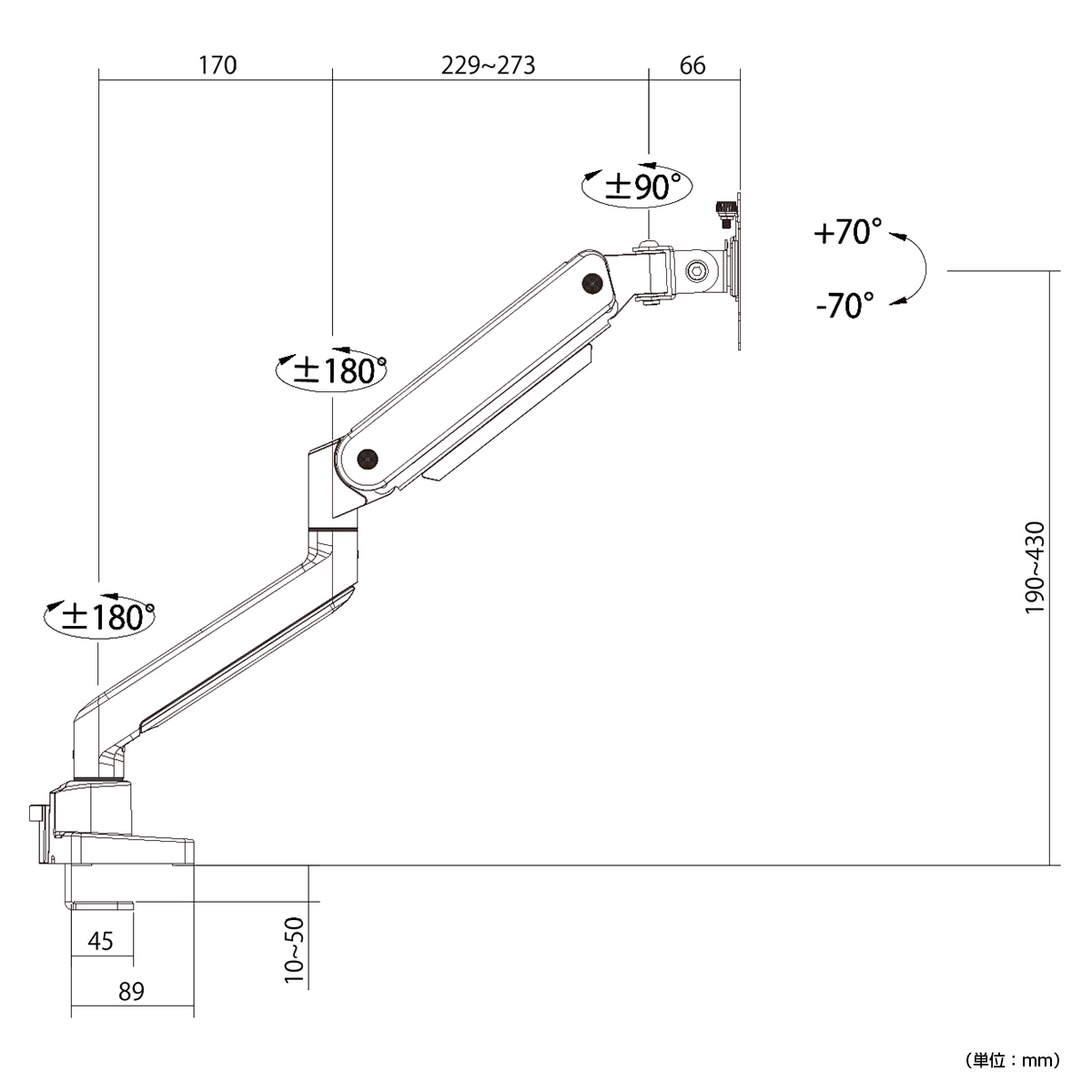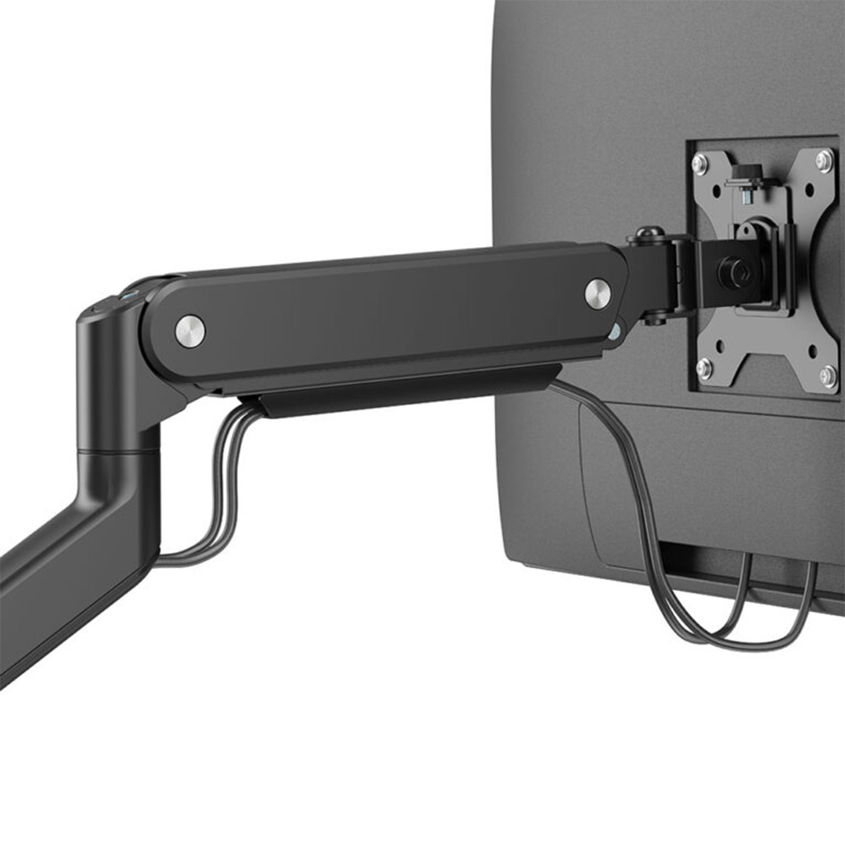 可動域が広いメカニカルスプリング式を採用し、モニターの位置や角度を自由自在に調整できる高性能モニターアームです。
