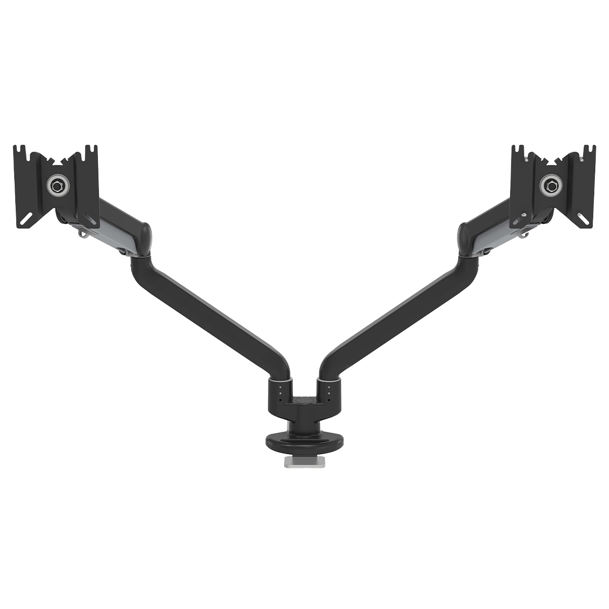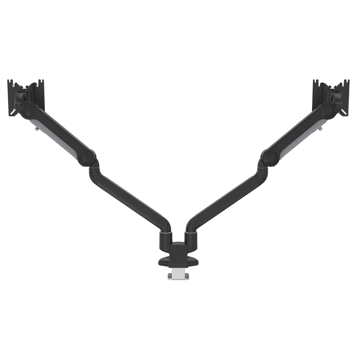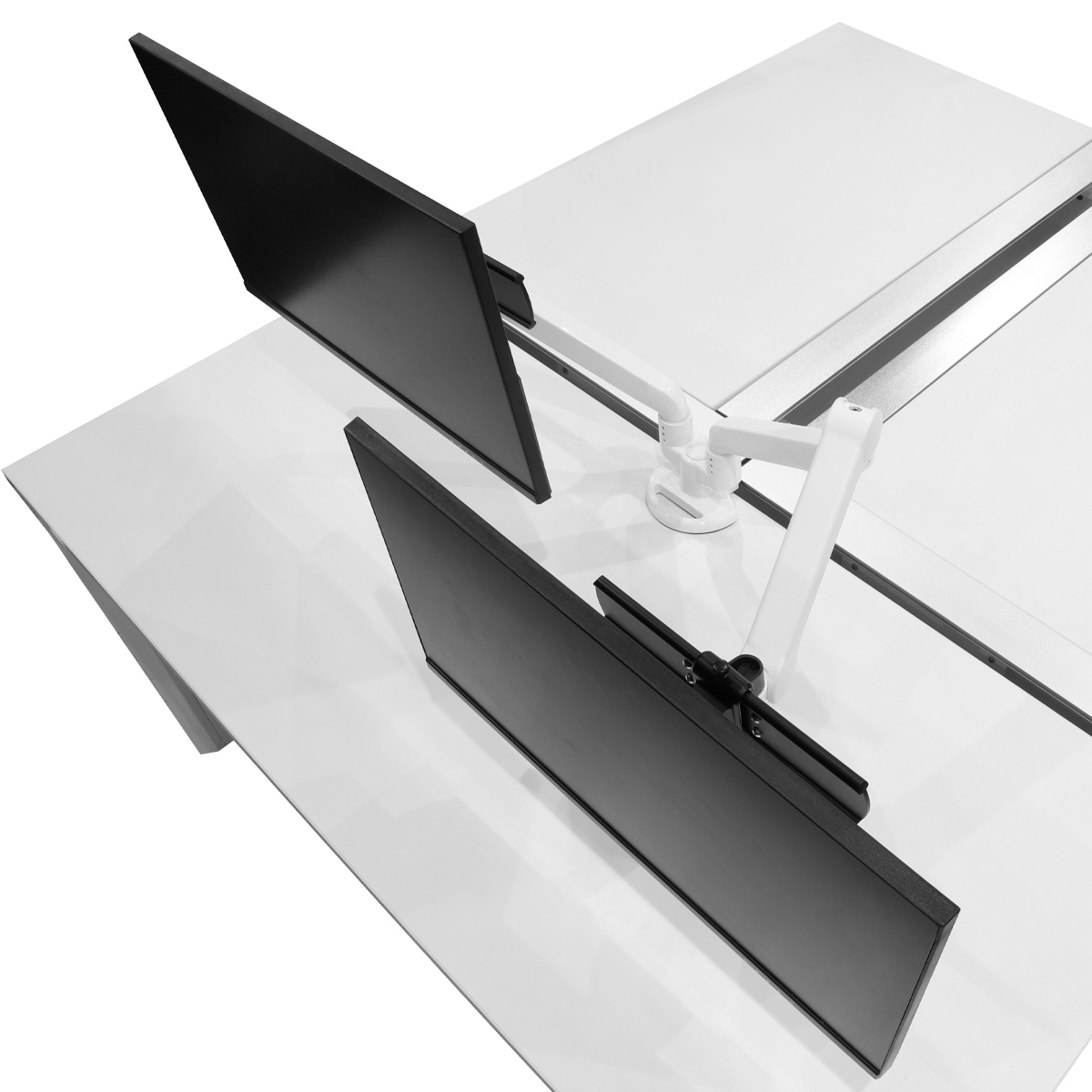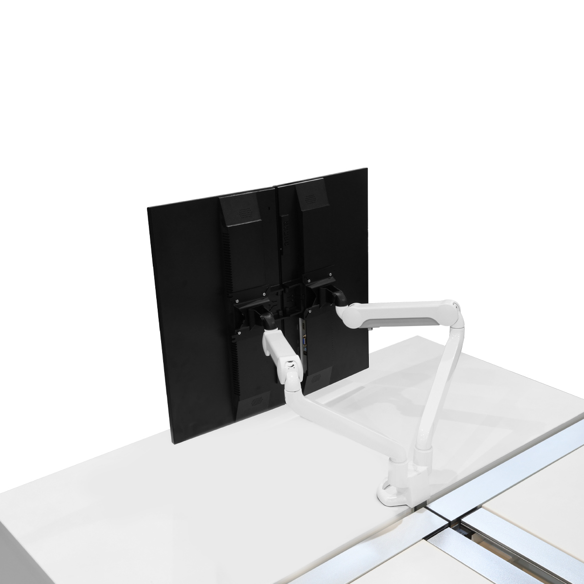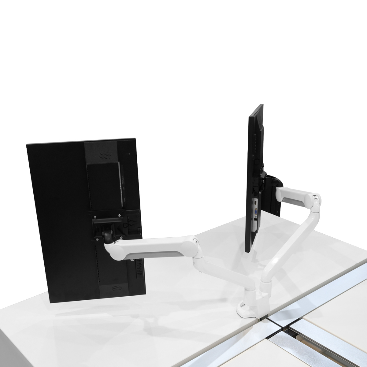 2台のモニターを効率的に設置できる、可動性に優れた水平垂直多関節型のデュアルモニターアームです。