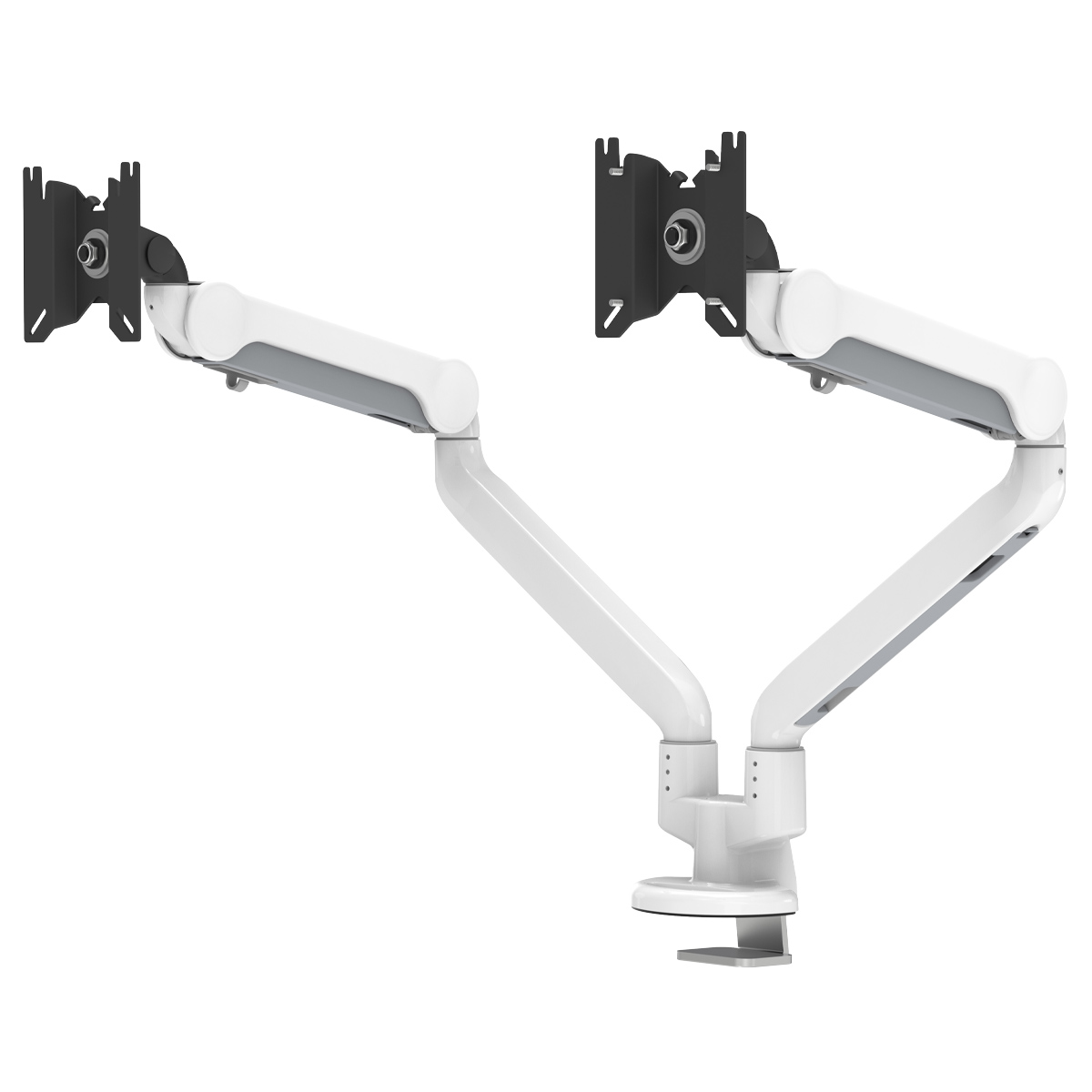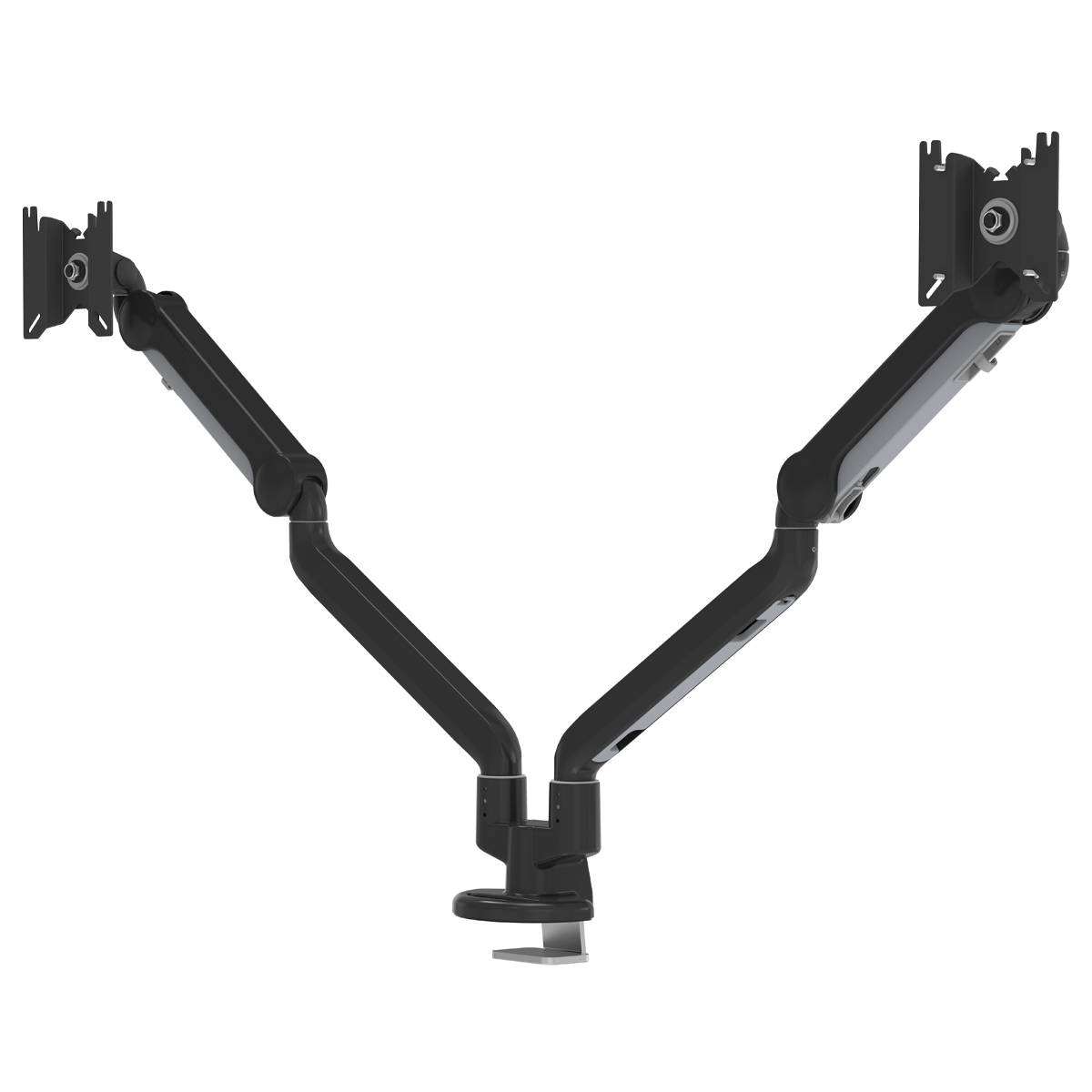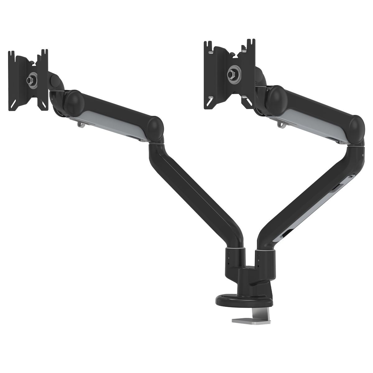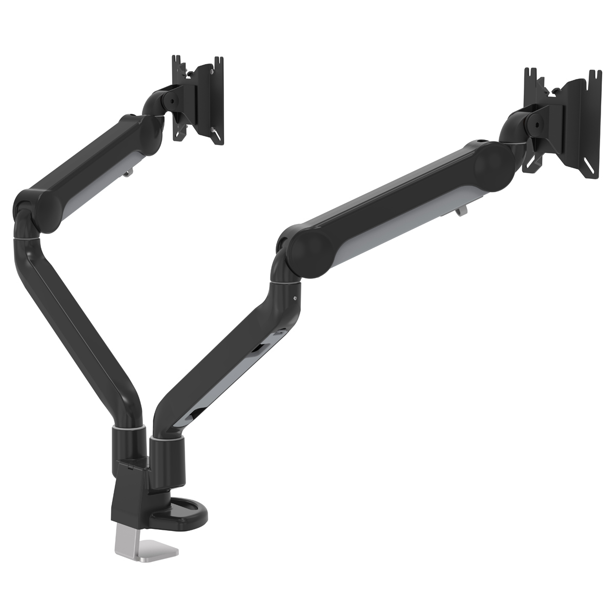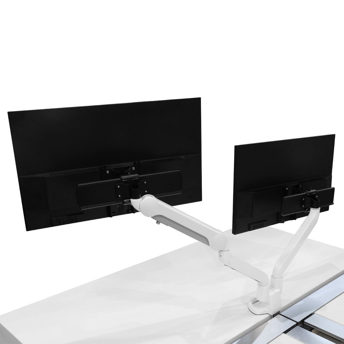 2台のモニターを効率的に設置できる、可動性に優れた水平垂直多関節型のデュアルモニターアームです。
