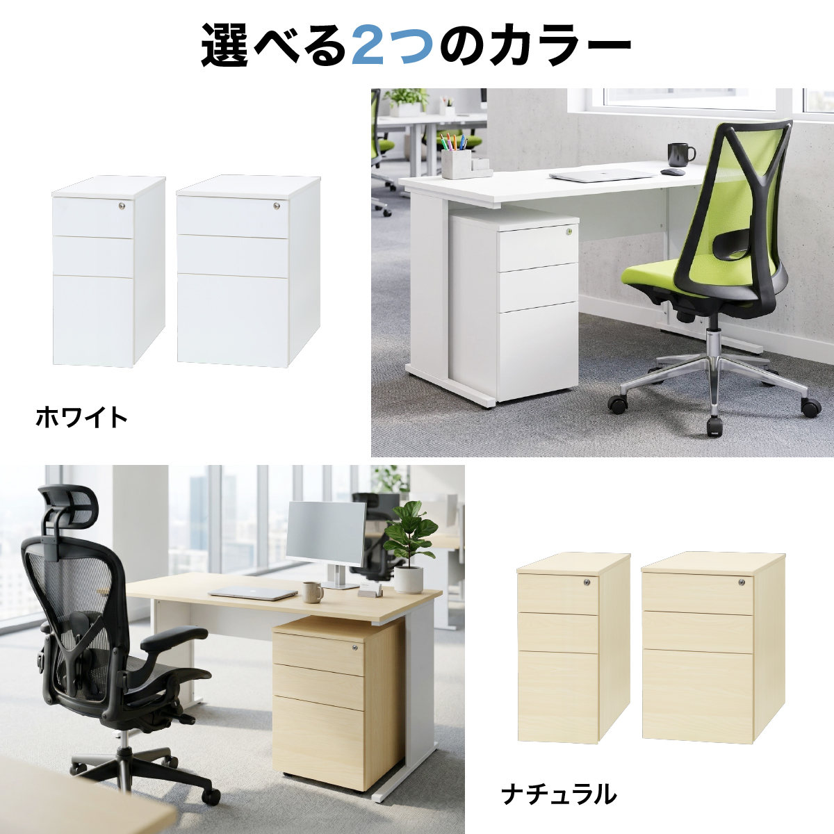 ホワイトとナチュラルの2色展開で、エコノミーデスクと組み合わせれば統一感のあるワークスペースを手軽に実現できます。