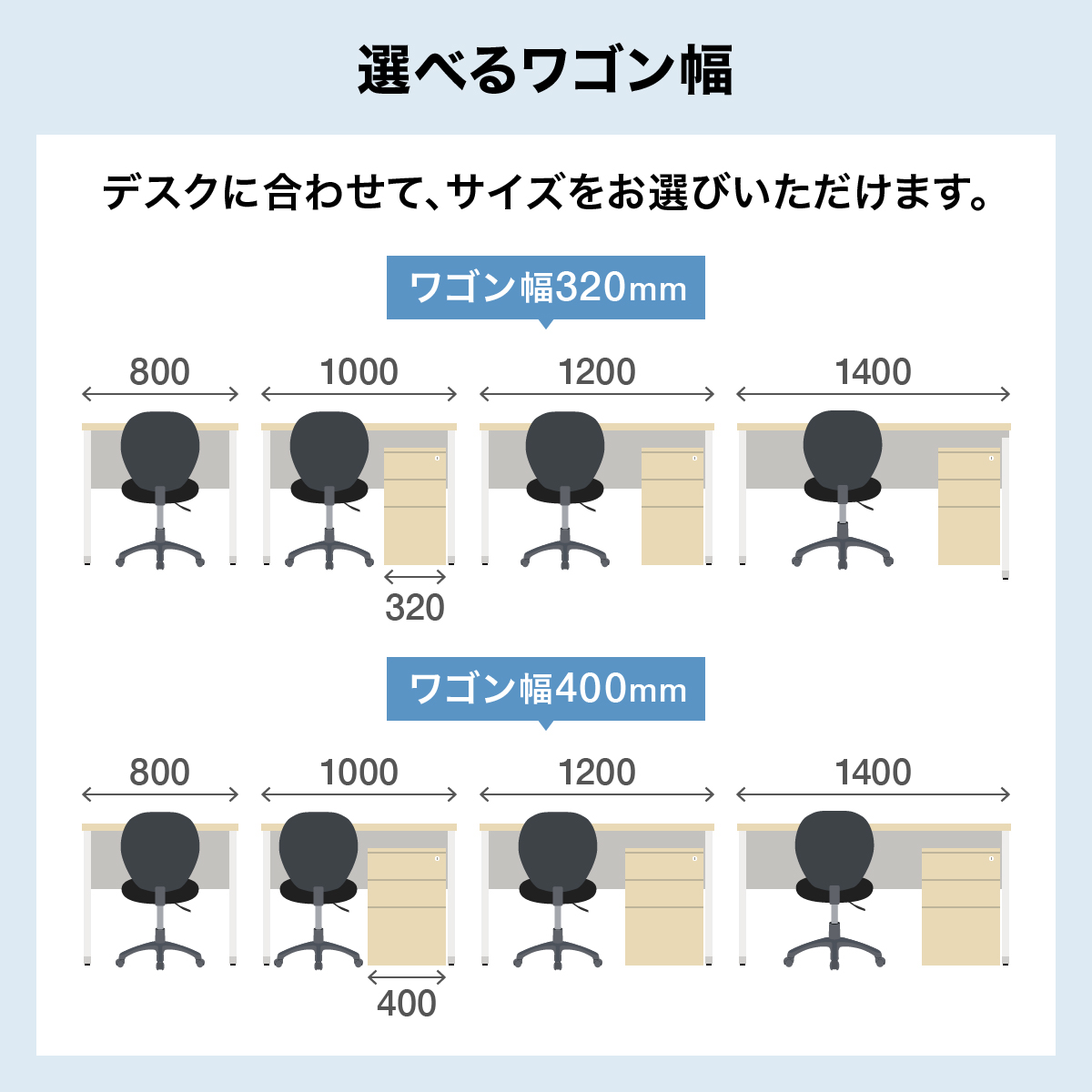 また、より収納力を確保した標準幅400mmタイプもラインナップしており、使用環境に応じてお選びいただけます。