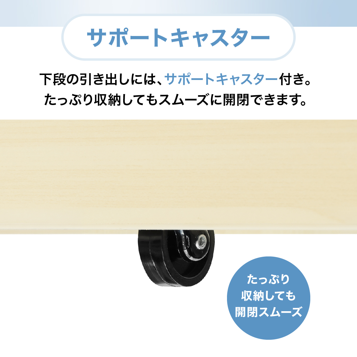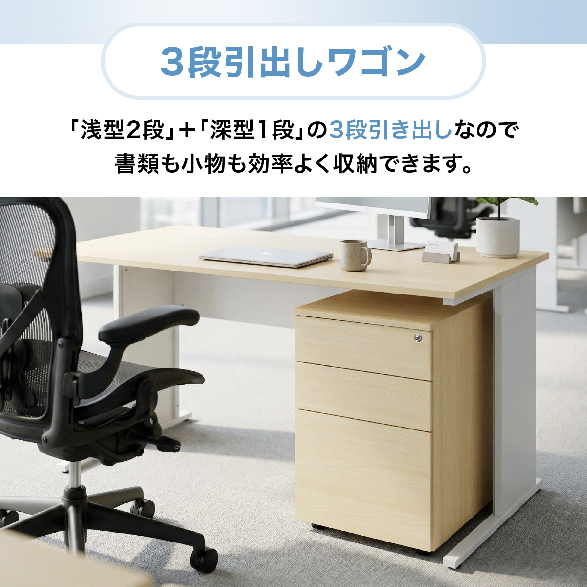 浅型2段+A4対応深型1段で、書類も小物も効率よく整理でき、デスク周りをすっきり保てます。