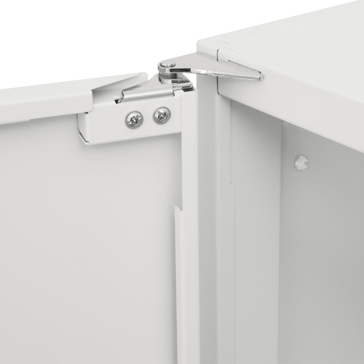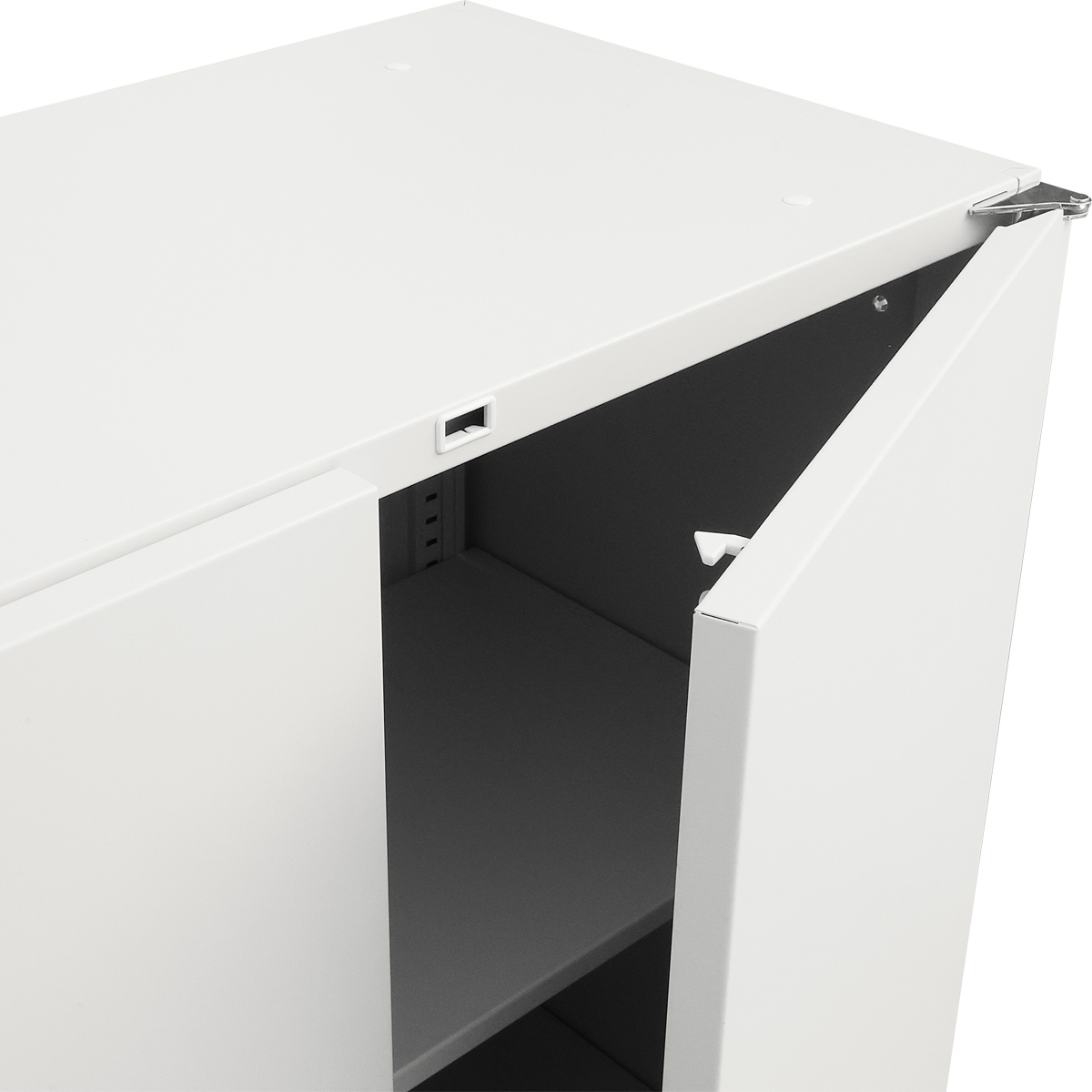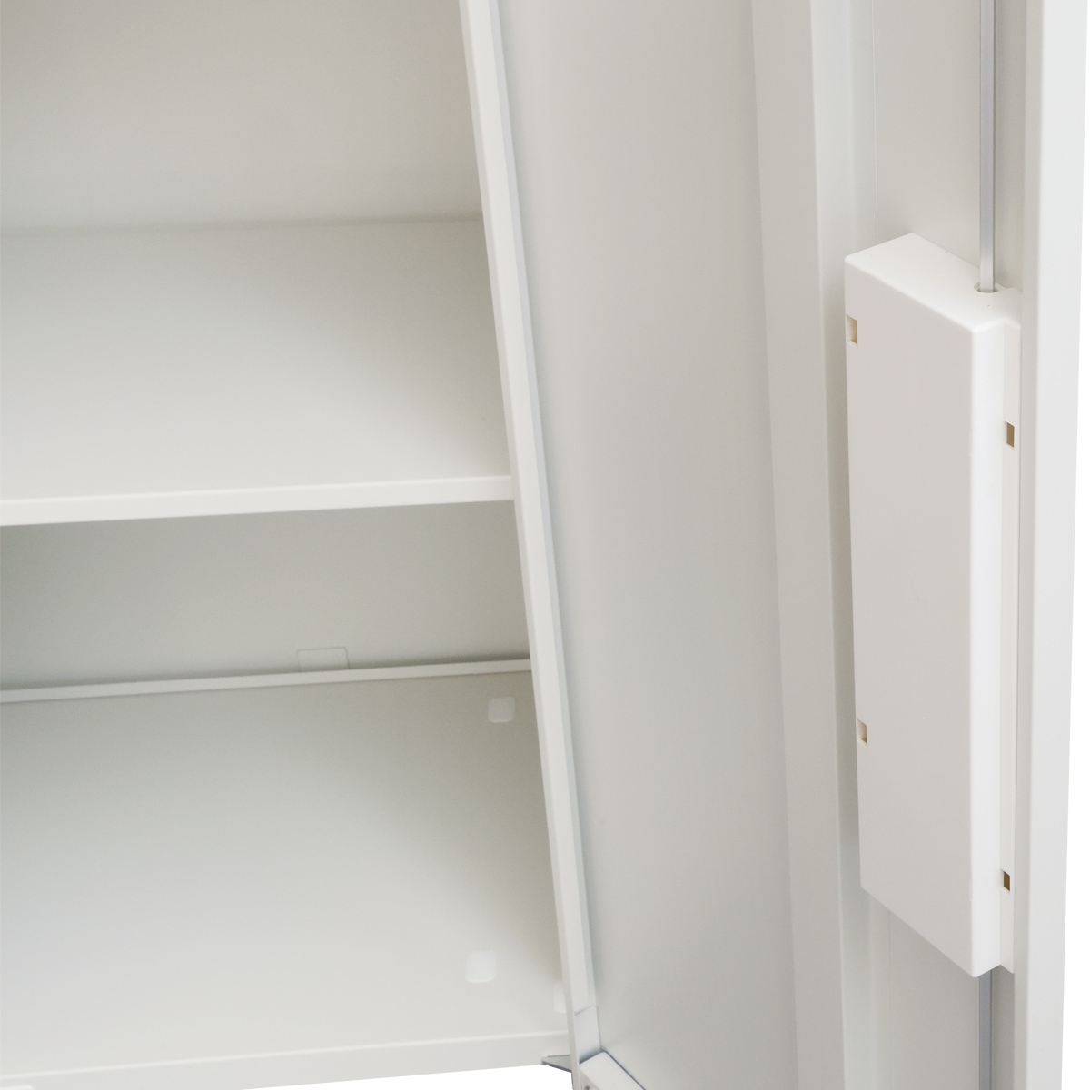 扉を閉めるとラッチが本体にしっかりと掛かることで不意な開放を防ぐ仕組みとなっており、日々の業務に集中できる安全な環境づくりに貢献します。