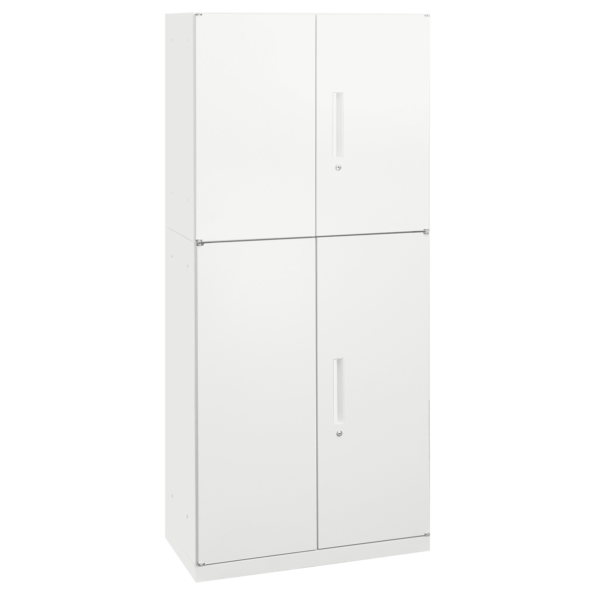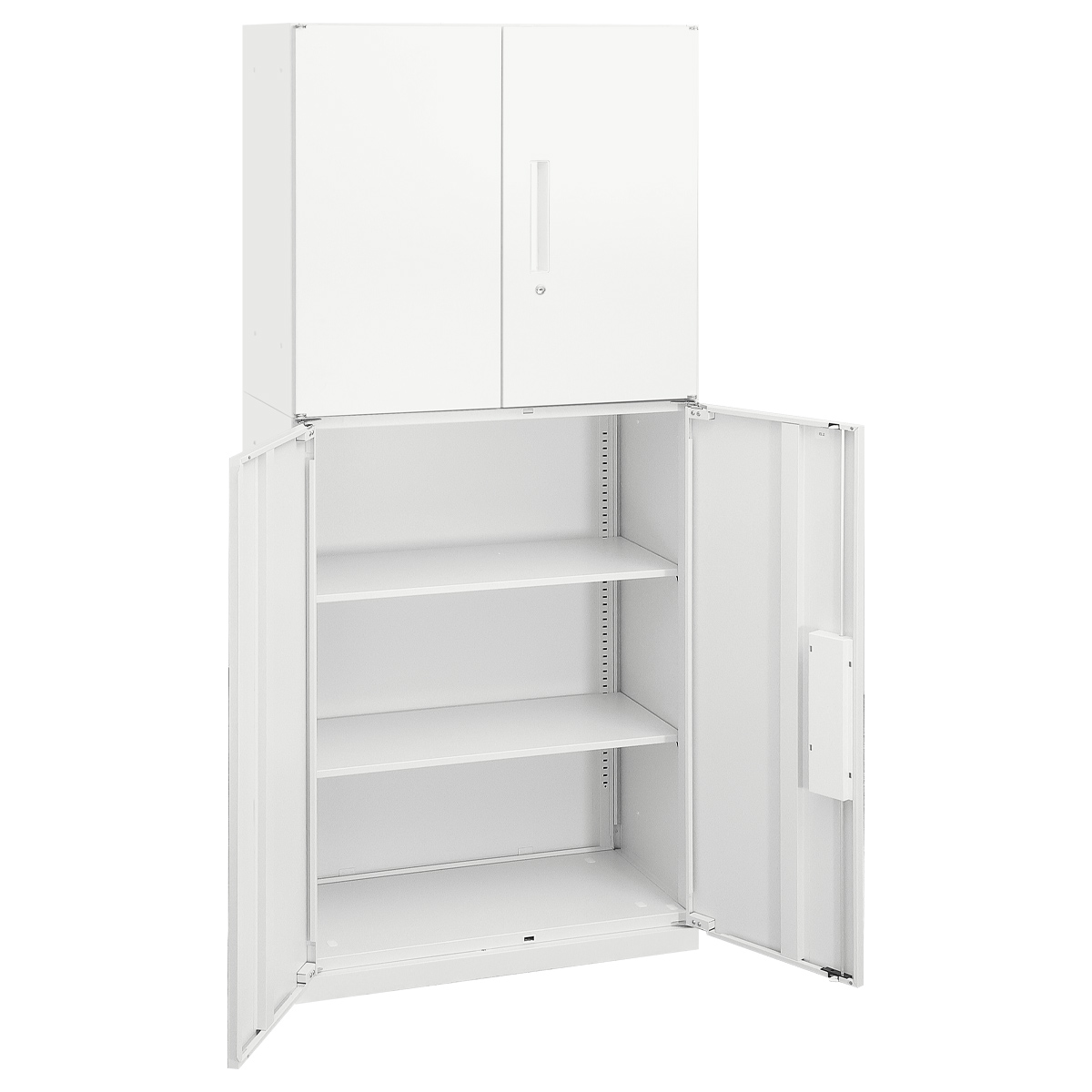 上下ともに両開き扉タイプを採用したセットは、収納物の取り出しやすさとセキュリティ性を兼ね備えたバランスの良い構成です。