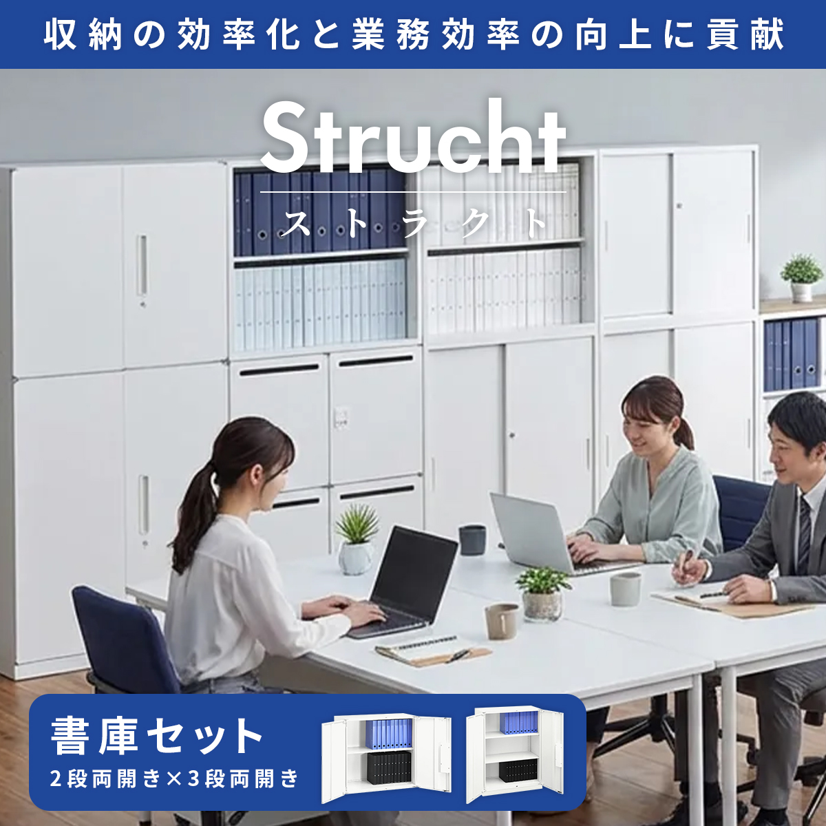 「Strucht(ストラクト)」シリーズは、収納の効率化を通じて、働きやすい環境づくりをサポートいたします。