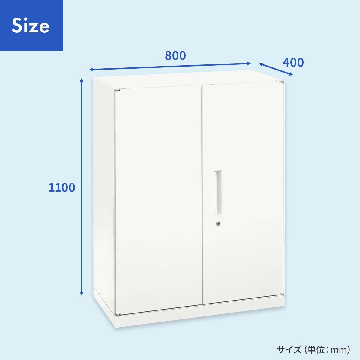 幅800×奥行400mmのコンパクト設計により、省スペースでもしっかりと収納力を確保でき、オフィスの整理整頓をサポートいたします。