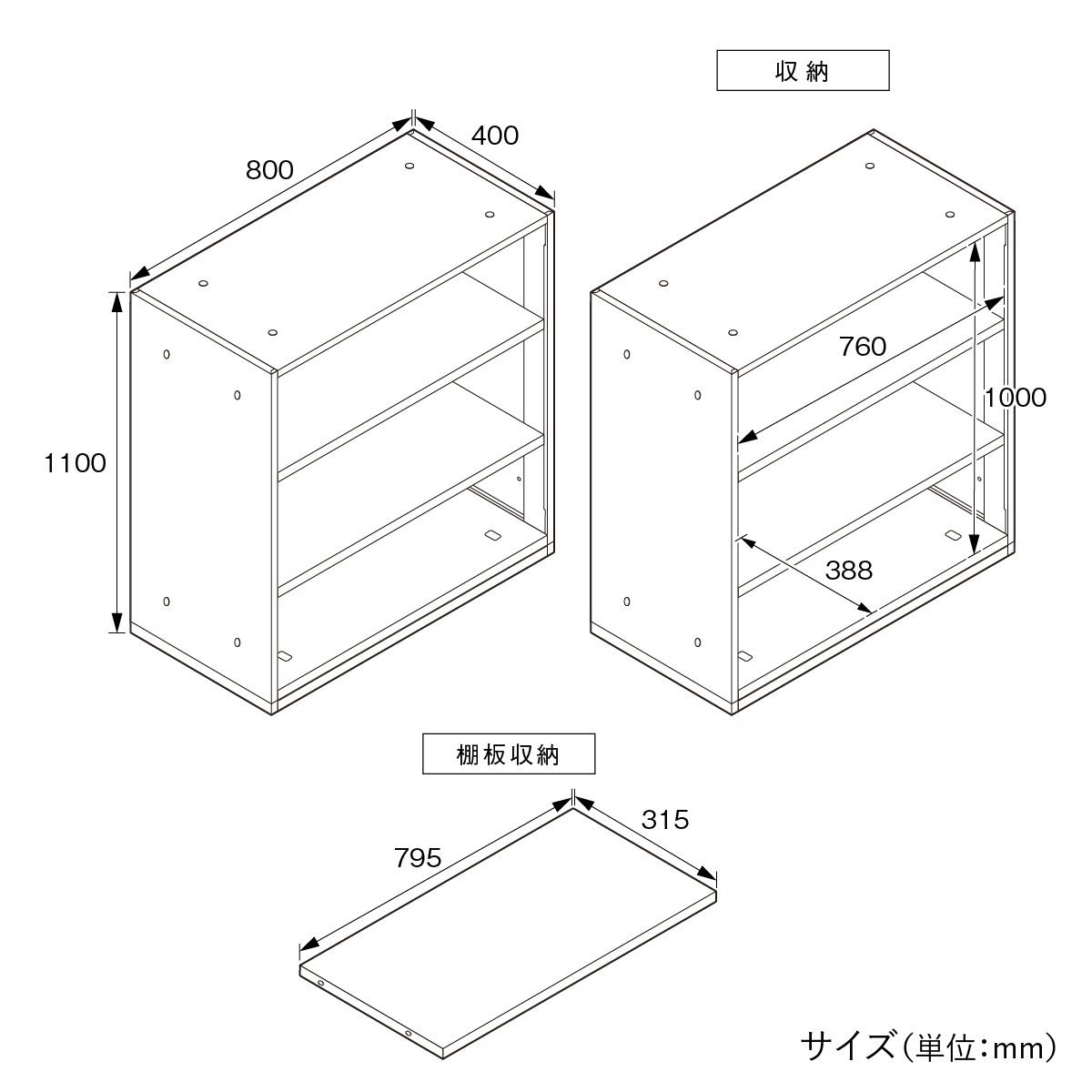 | 仕様 | 上段:2段オープン書庫 下段:3段オープン書庫 ベース付き |