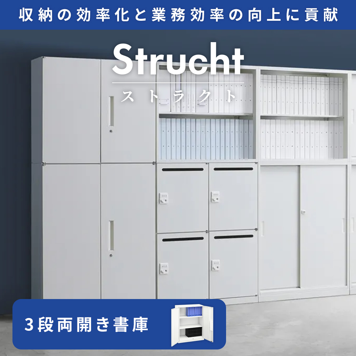 「Strucht(ストラクト)」シリーズは、収納の効率化を通じて社員の集中力や生産性を高め、チーム全体のパフォーマンス向上にも繋がり、働く人の力を引き出す大切な土台となることでしょう。