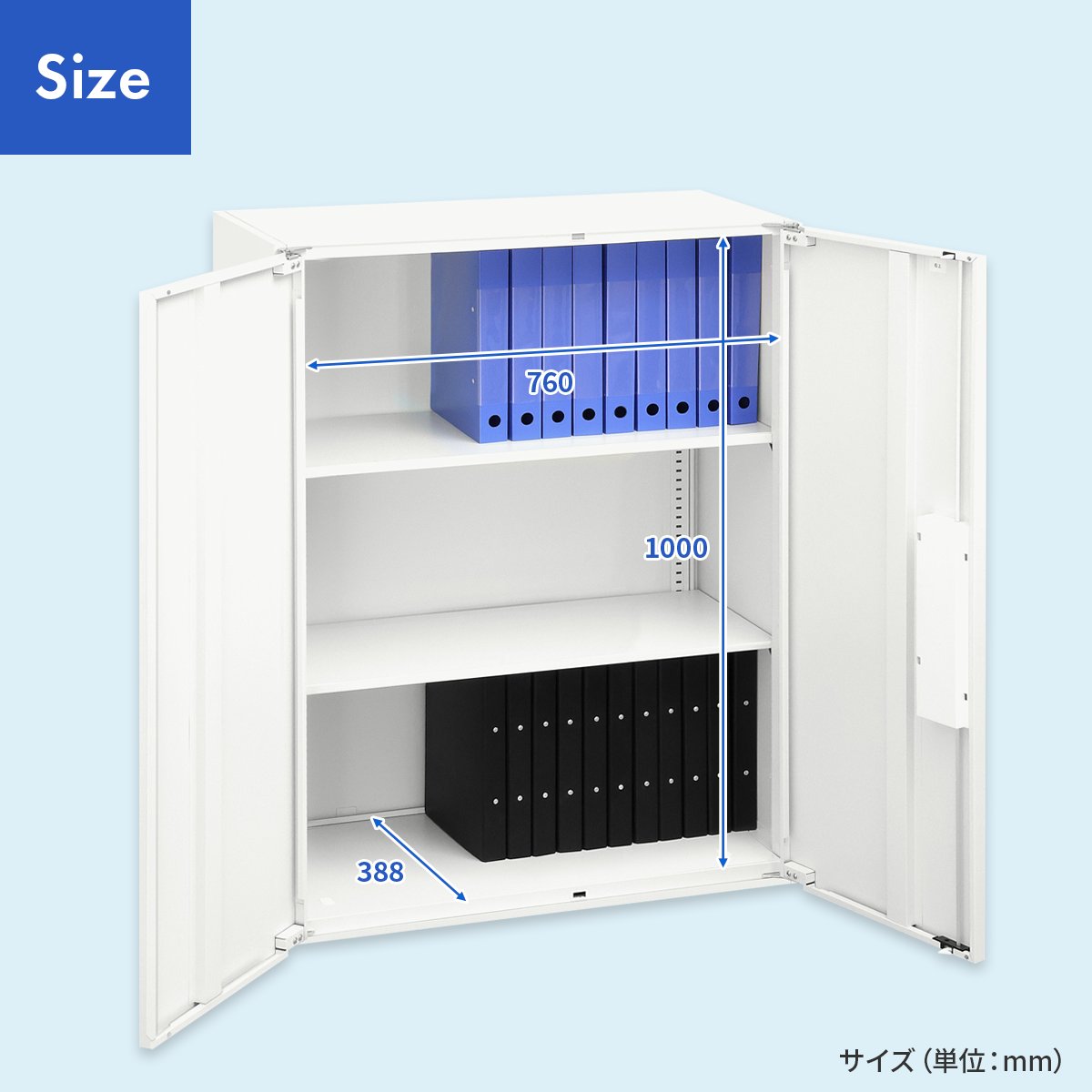 両開き扉タイプは、広い開口部により収納物の出し入れがしやすく、しっかりと保管したい場面に適しています。