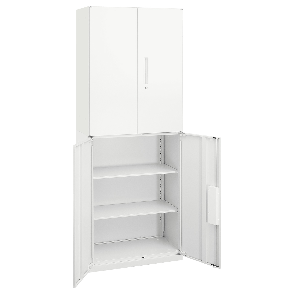 上下ともに両開き扉タイプを採用したセットは、収納物の取り出しやすさとセキュリティ性を兼ね備えたバランスの良い構成です。
