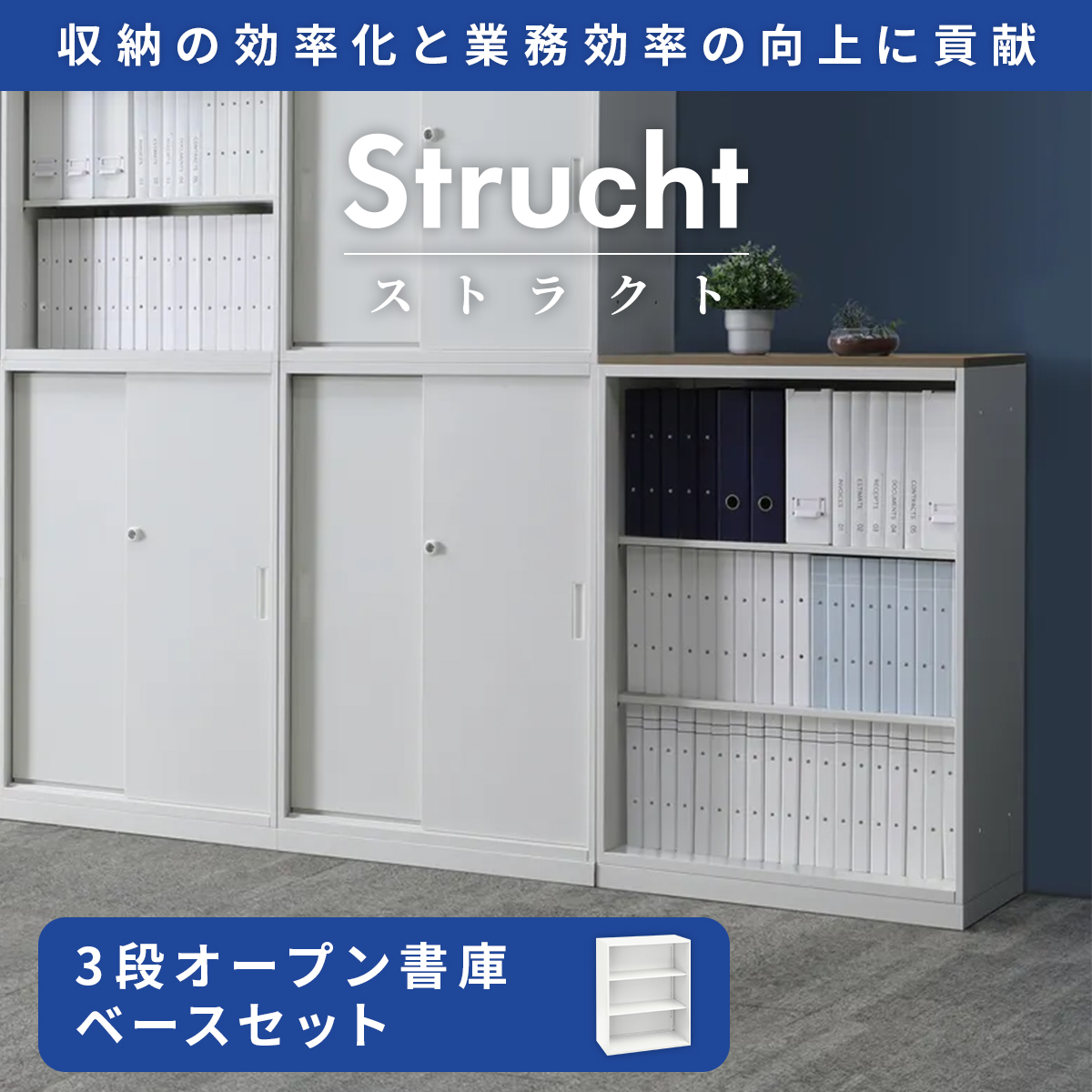 【レビューキャンペーン実施中】Strucht ストラクト 3段オープン書庫ベースセット 幅800 奥行400 高さ1100 など、定番のオフィス家具・OA機器を豊富に取り揃えた、法人・個人事業主様向け通販サイトです。