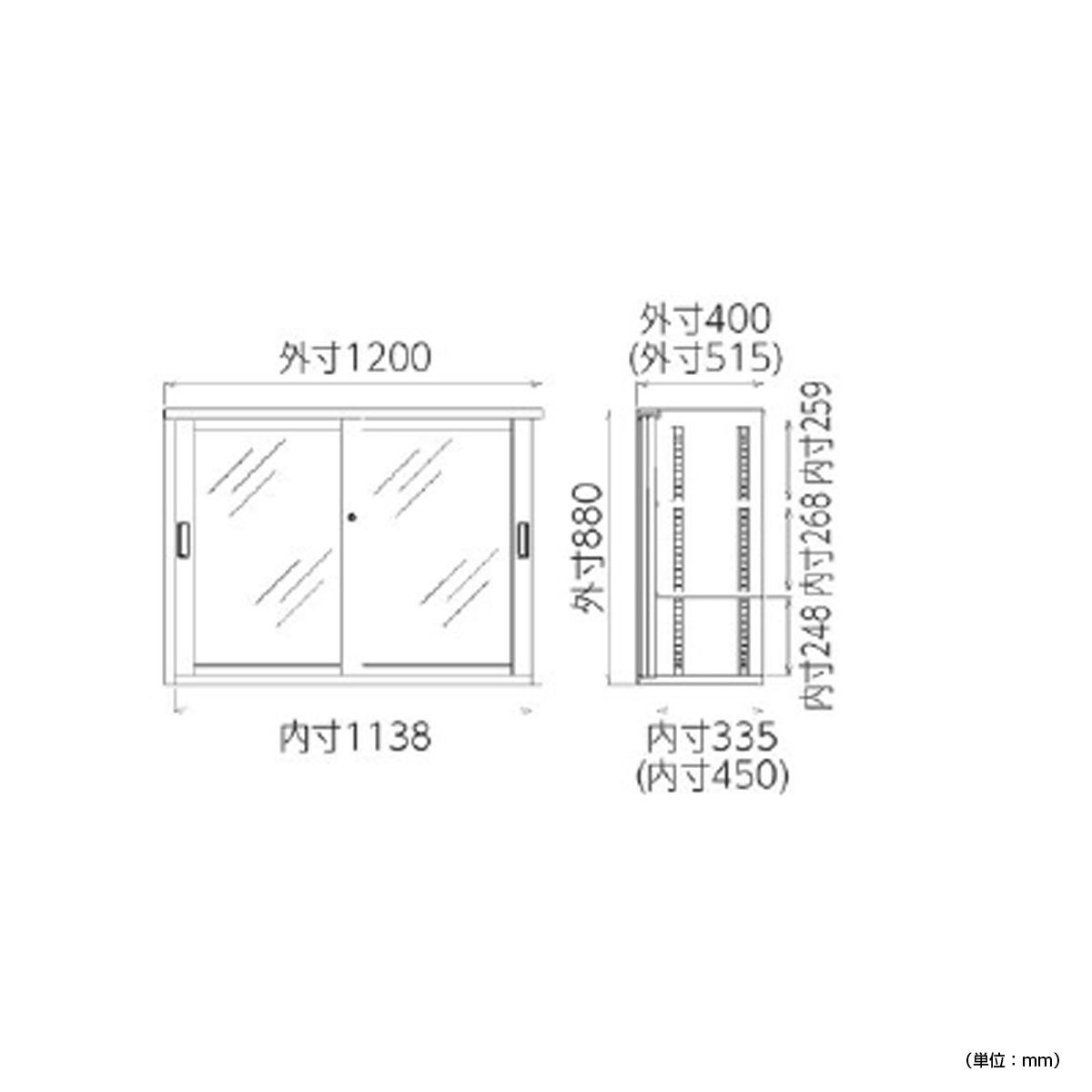 ガラス引き違い収納庫 TSシリーズ(W1200×D515×H880)