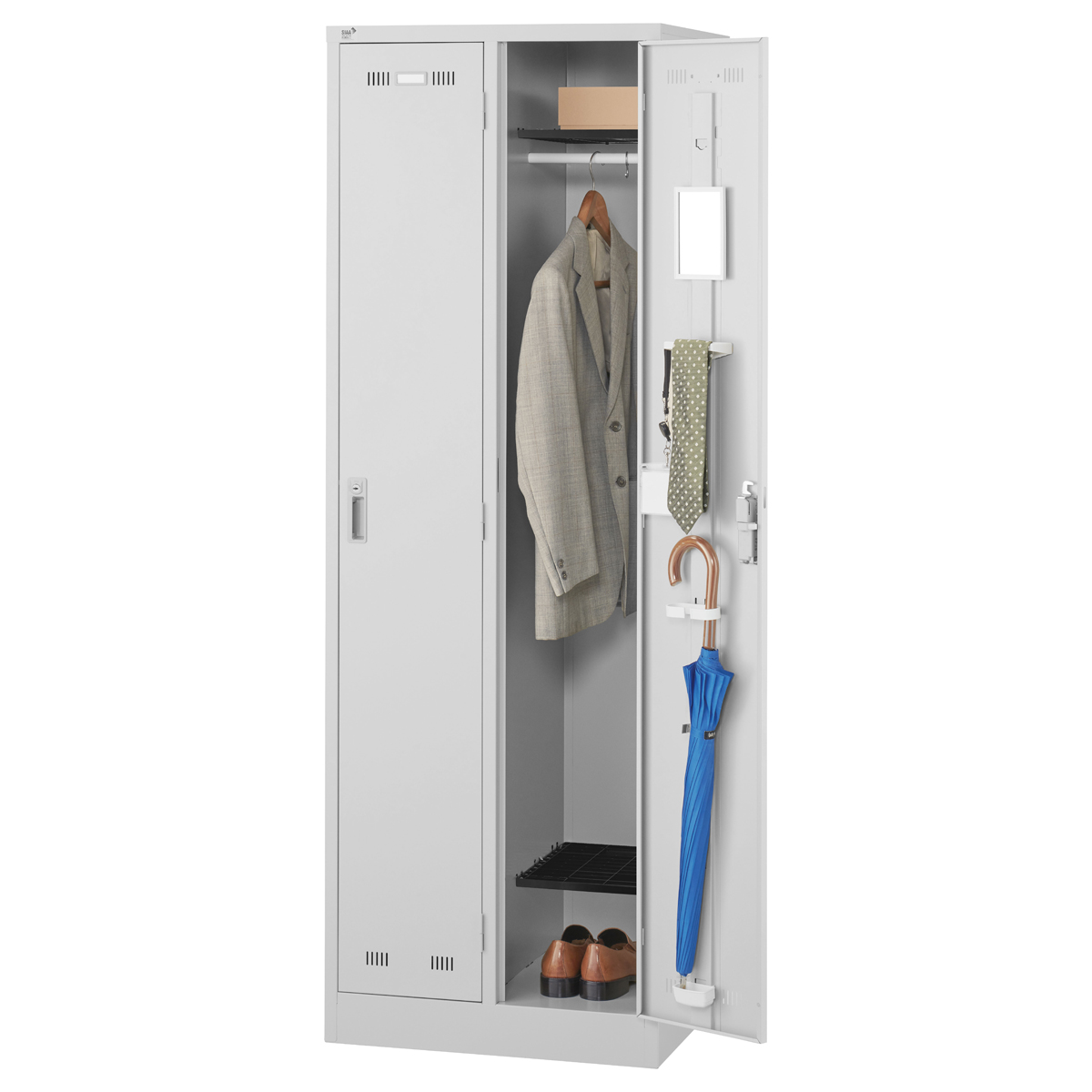 ハンガーパイプや内棚はもちろん、便利な鏡や傘立が付いた、オーソドックスな多機能ロッカーです。