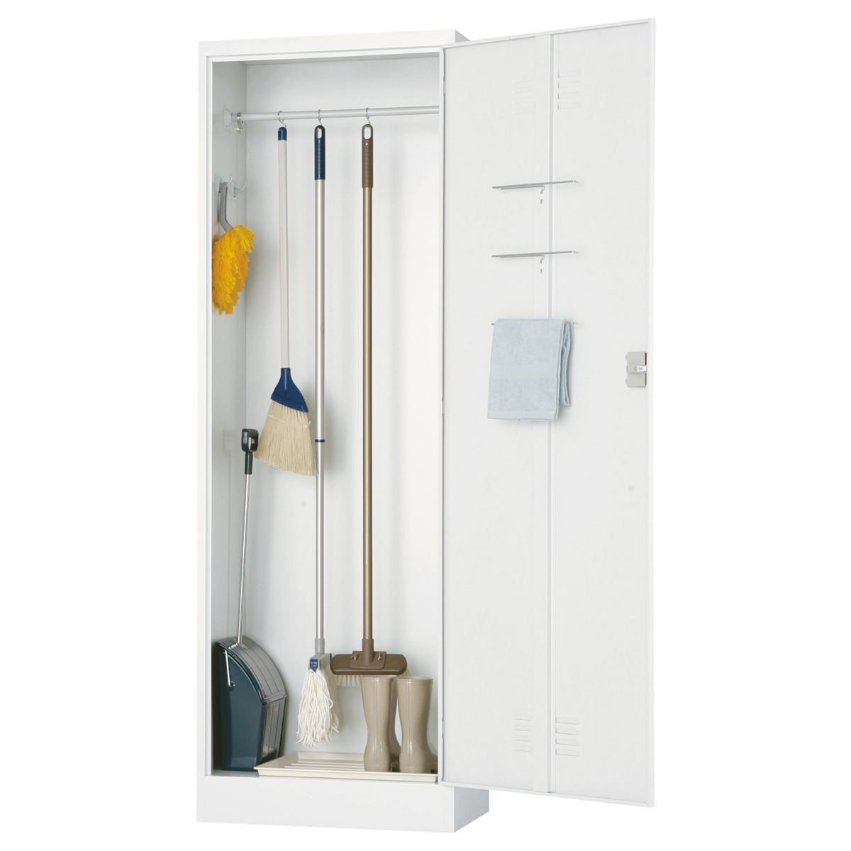 掃除用具をすっきり整理できる充実の付属品付き収納ロッカーです。