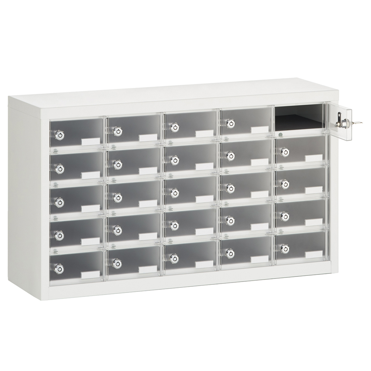 25人用シリンダー錠タイプ以外に、15人用、35人用、またそれぞれダイヤル錠とシリンダー錠タイプと豊富なバリエーションがありますので、使用人数や用途、設置スペースなどで最適な仕様をお選びいただけます。