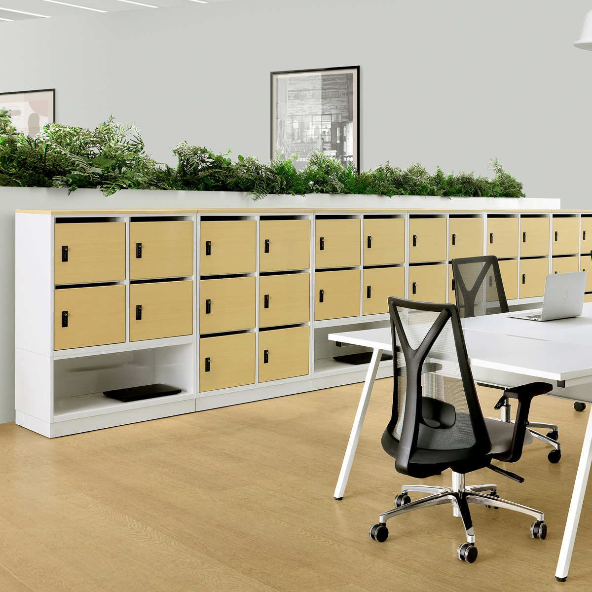 フリーアドレスオフィスやコワーキングスペース、役員フロアなど、さまざまなシーンでスマートな収納を実現します。
