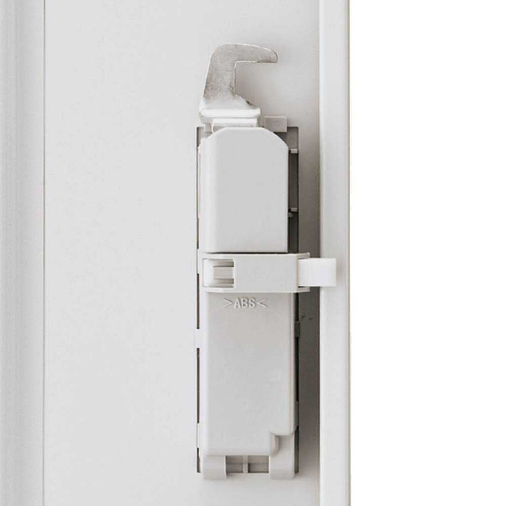 スチール特有の金属音をやわらげるため、また商品をキズつけず長持ちさせるため、扉裏の上下部分に戸当りクッションを採用しています。