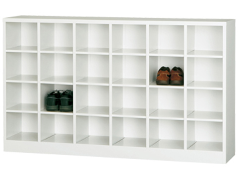 扉がないオープンタイプのシューズロッカー「SBKシリーズ」の6列4段24人用タイプです。