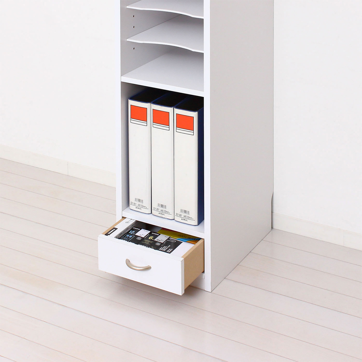 オープンタイプなので、頻繁に使う書類もさっと手に取りやすく、日常の業務効率アップにもつながります。