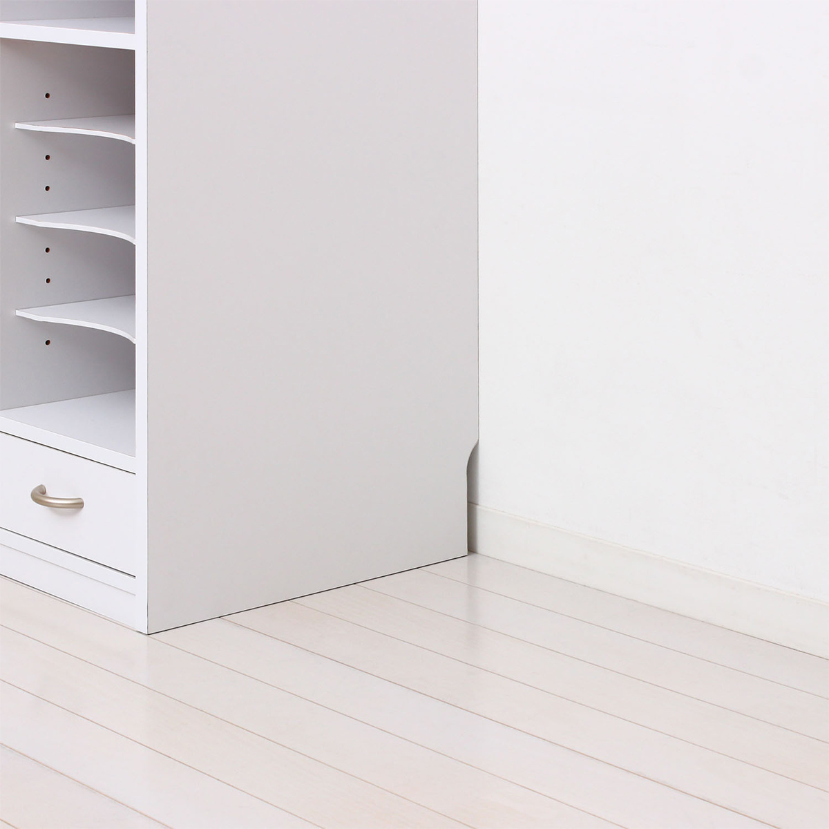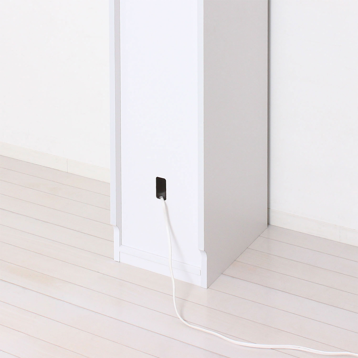 巾木を避ける形状で、壁際のデッドスペースをなくし、ぴったりと美しく設置することができます。